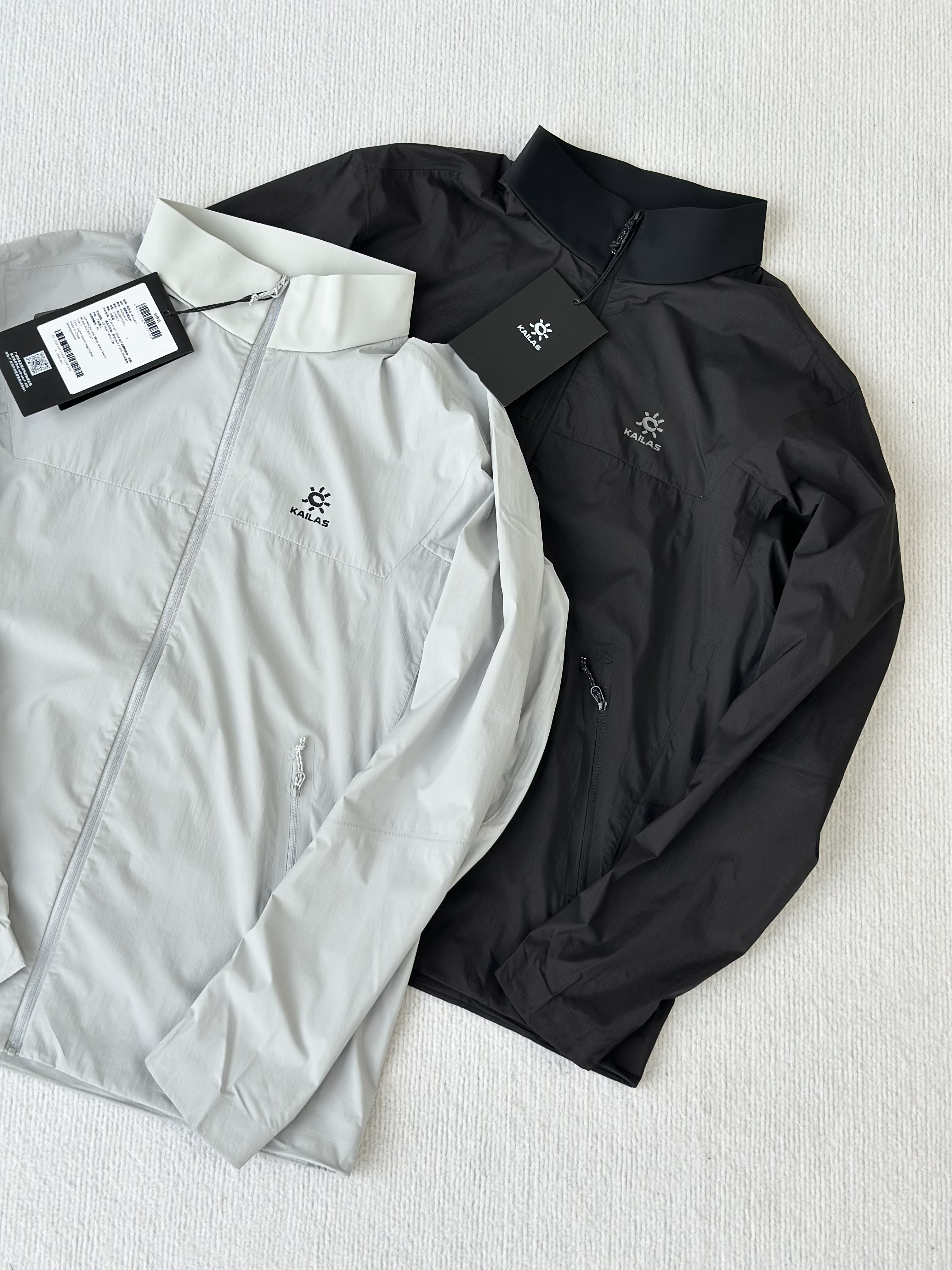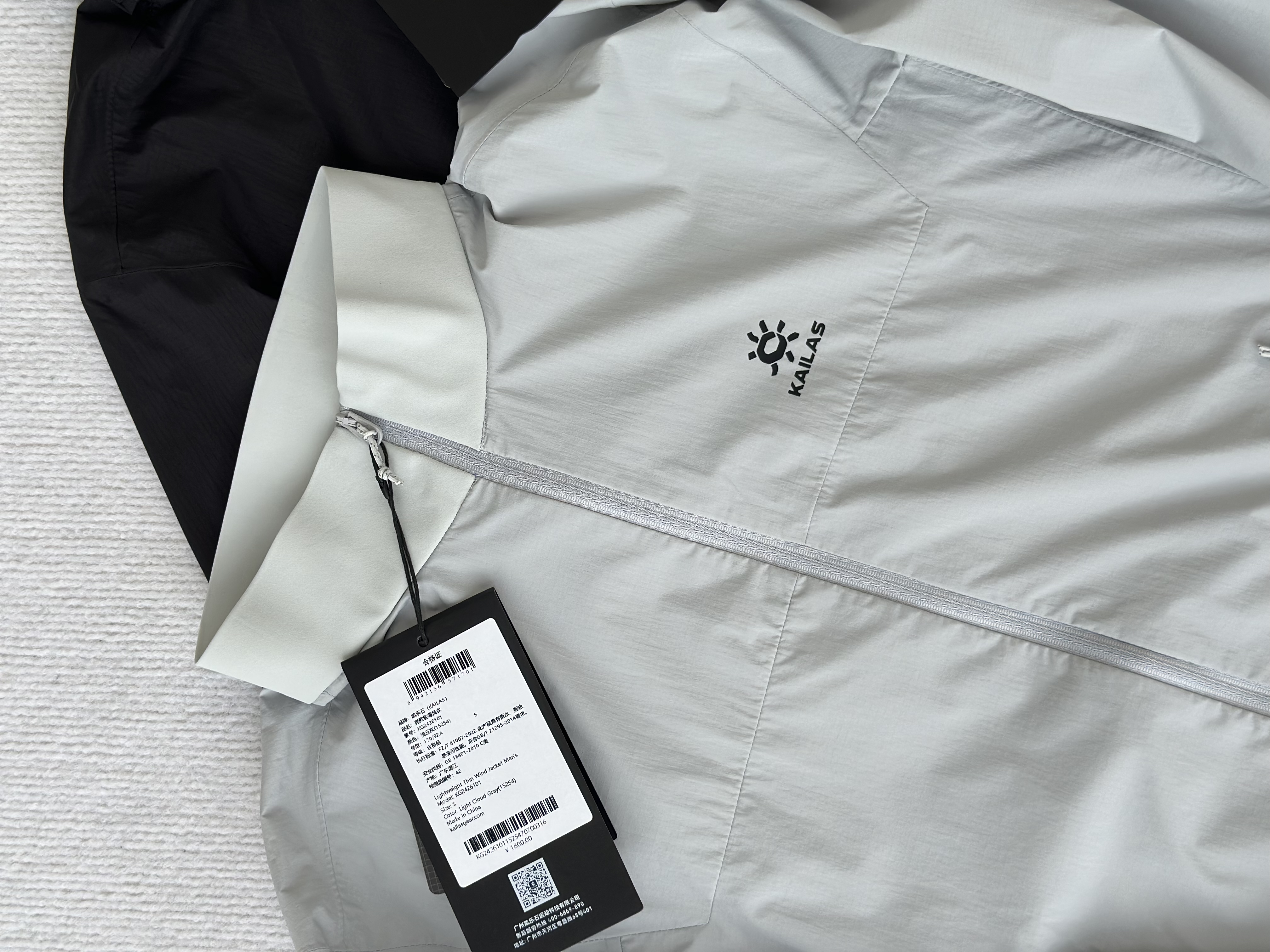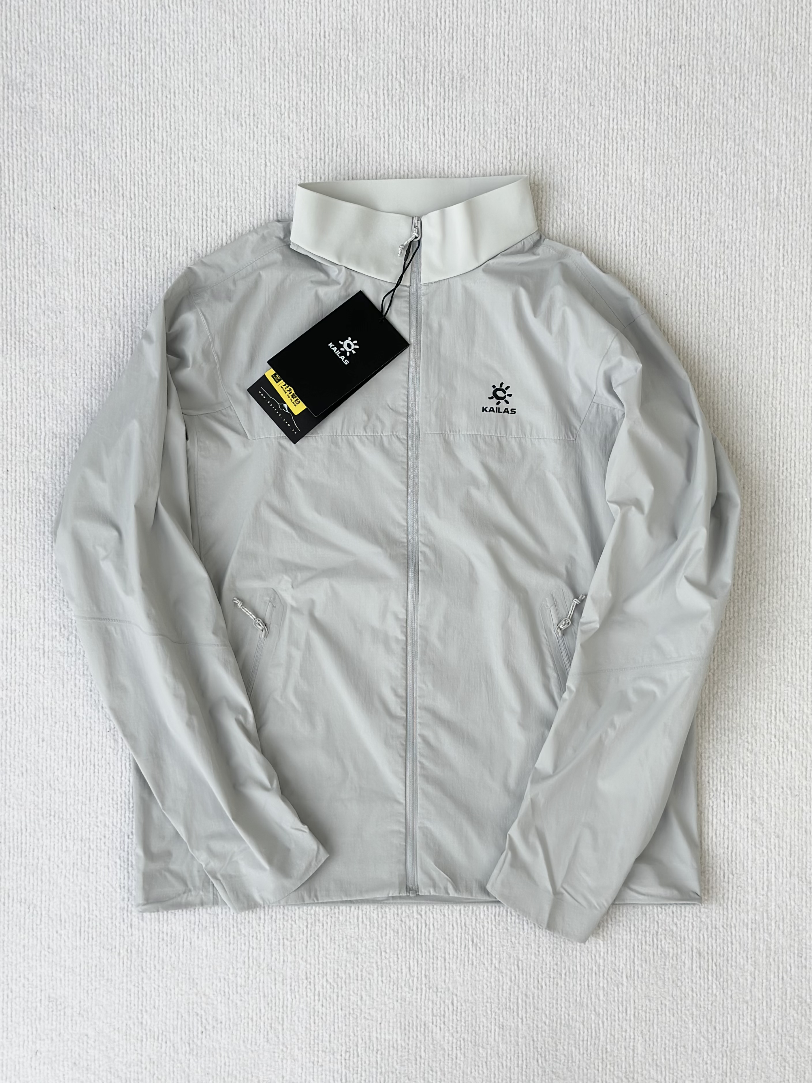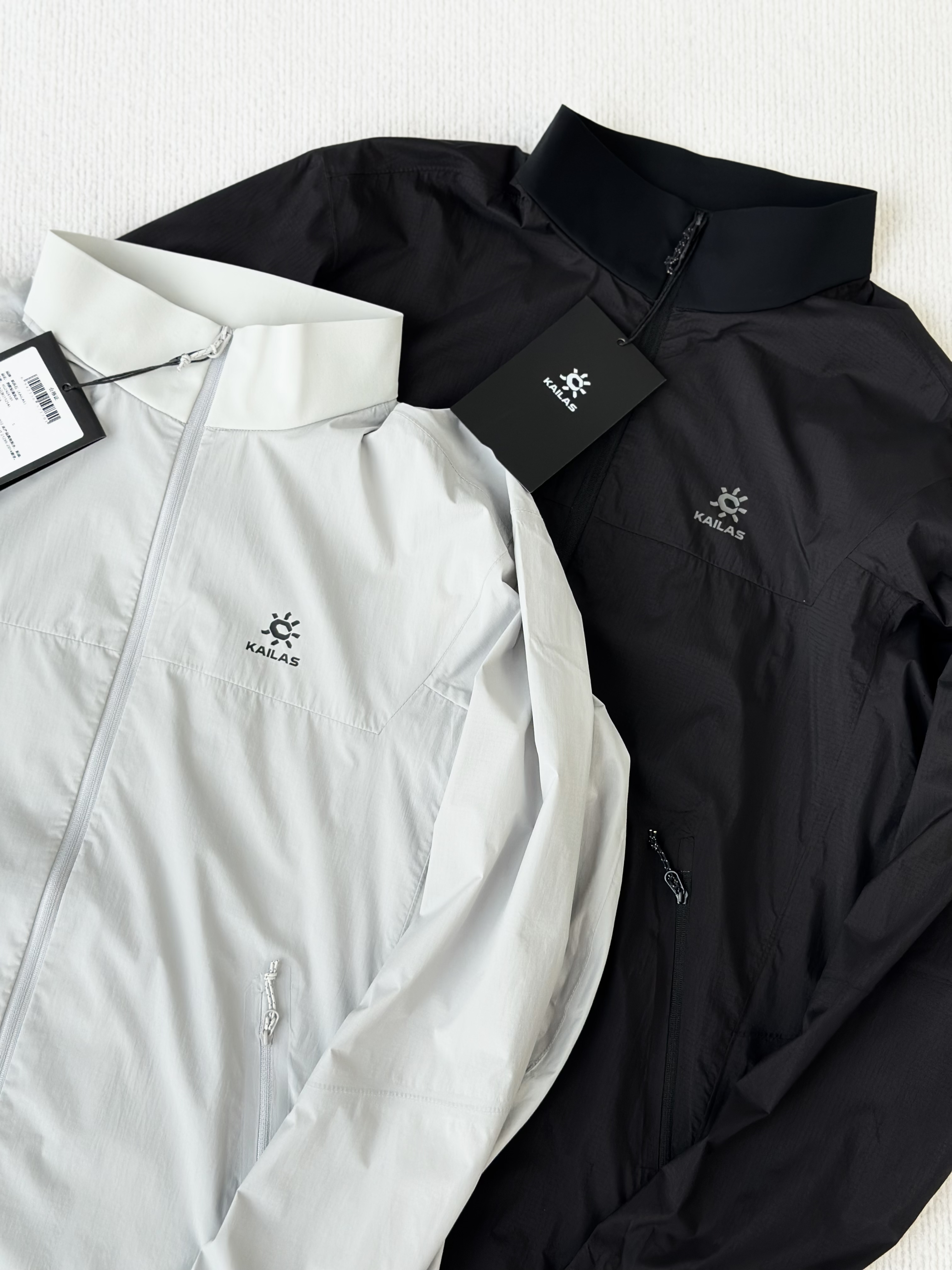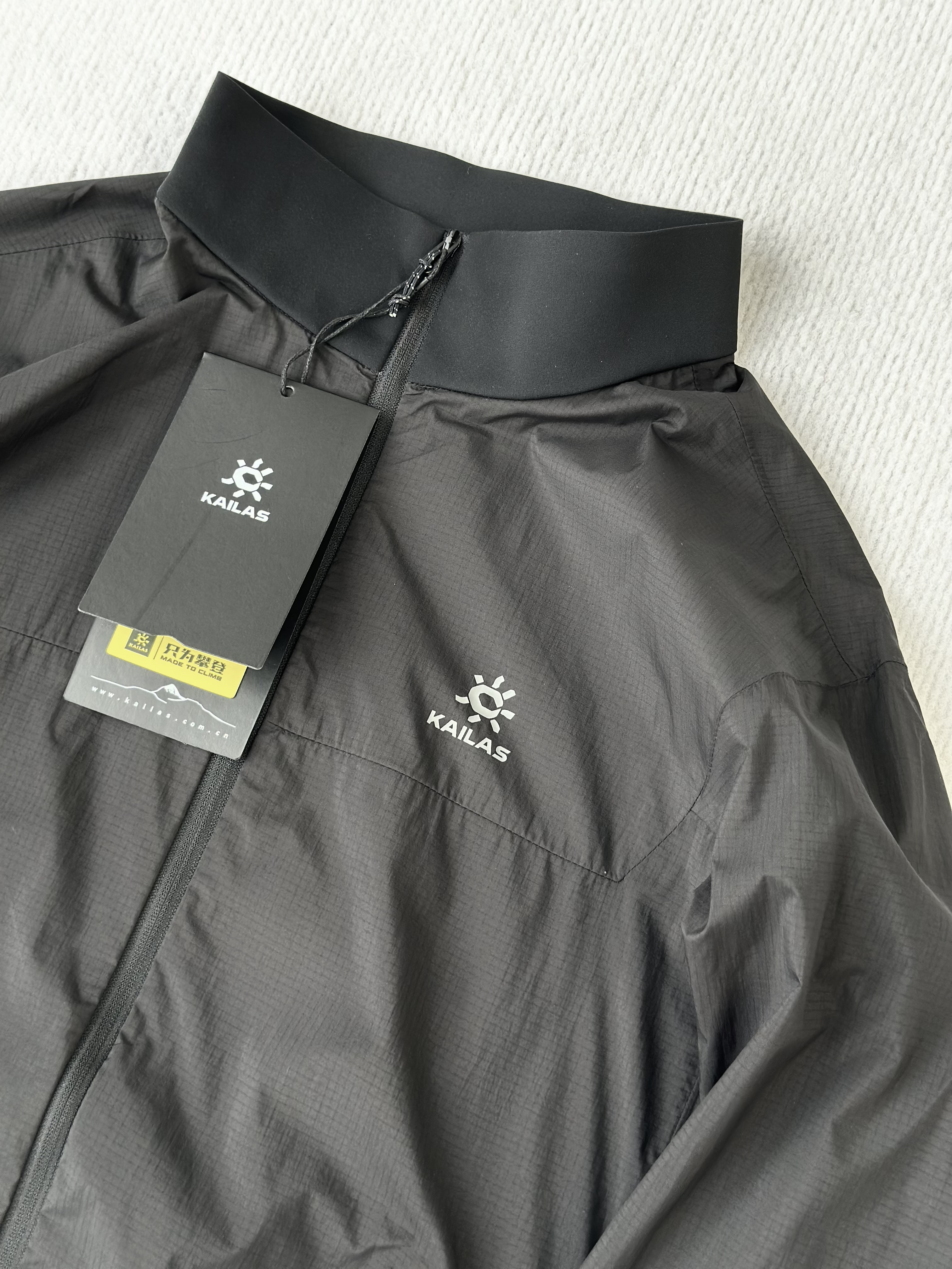 黑色+灰色 旗舰店已下架 高端不撞衫KAILAS凯乐石轻薄风衣立领防泼水透气户外运动徒步登山外套男款