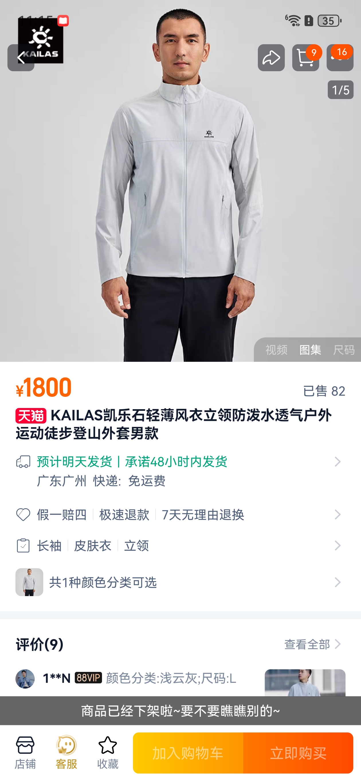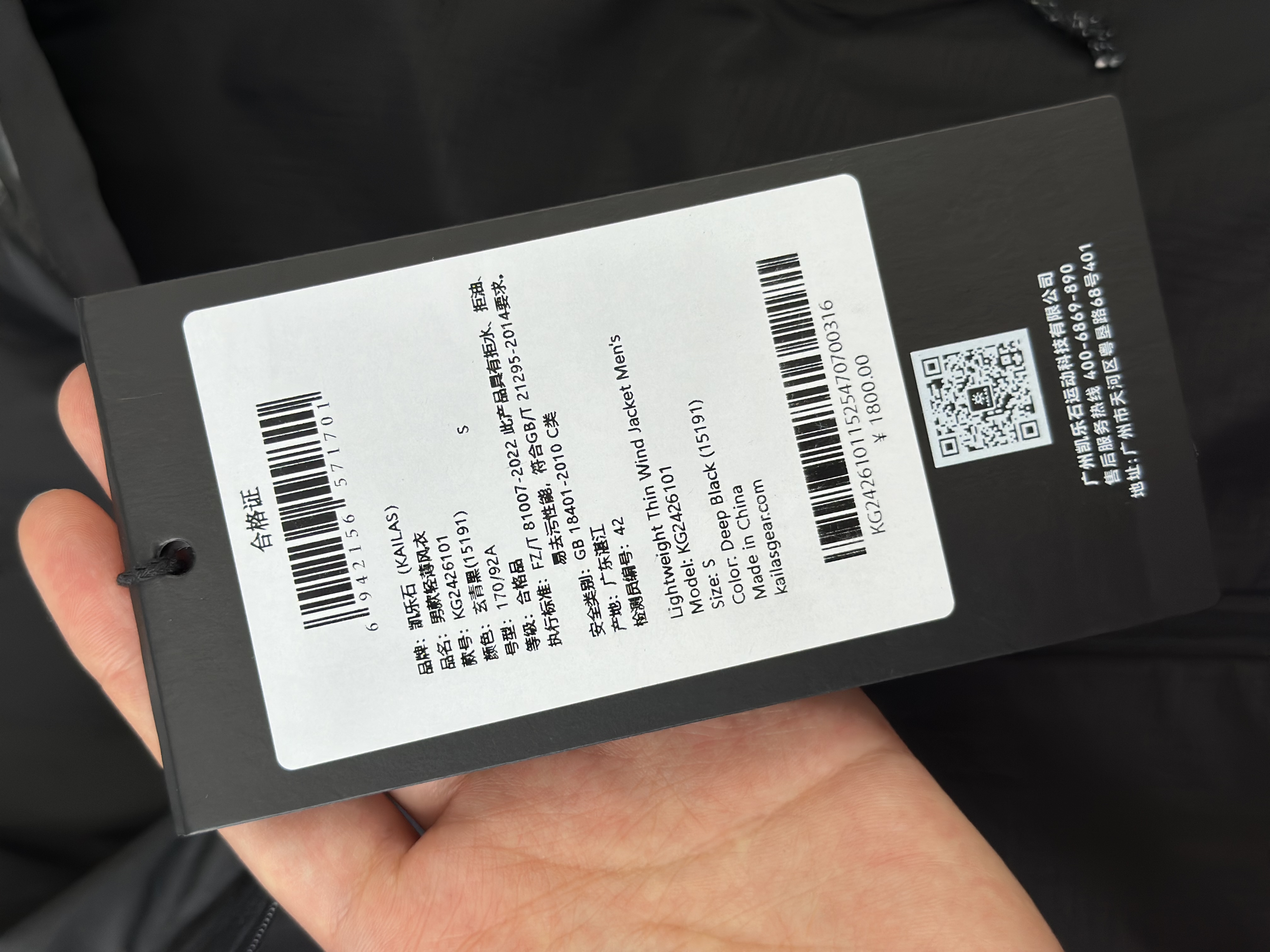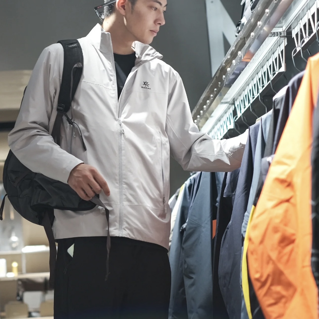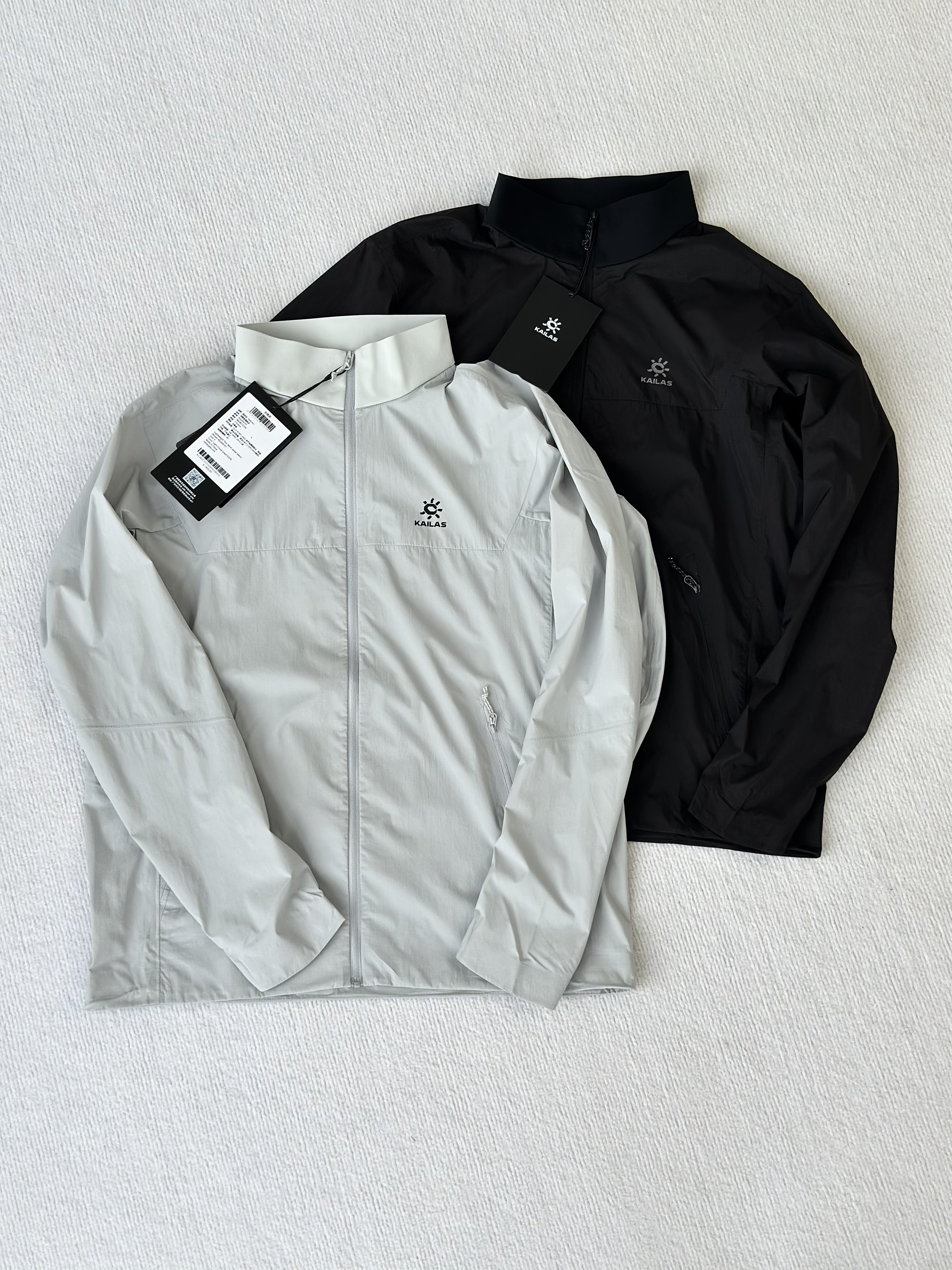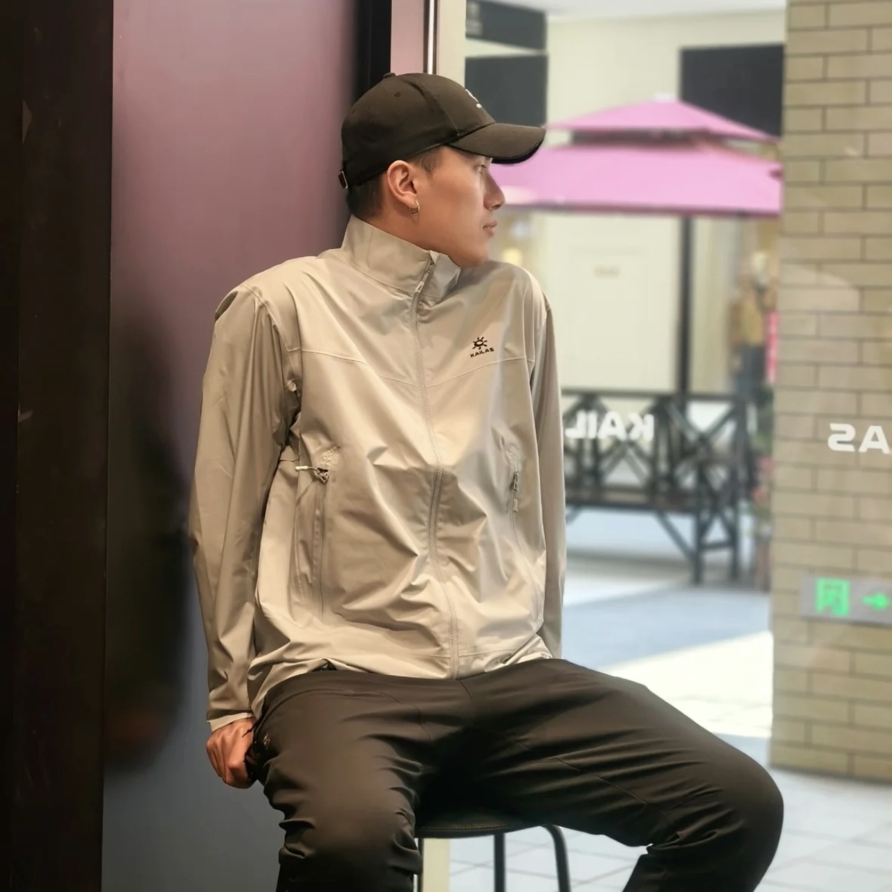 黑色+灰色 旗舰店已下架 高端不撞衫KAILAS凯乐石轻薄风衣立领防泼水透气户外运动徒步登山外套男款