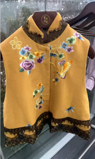 盛唐牡丹大师系列-王小潇 | 羊毛手绣蕾丝对襟马甲(盛唐牡丹与非遗传承人王小潇联名系列)