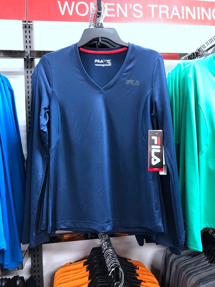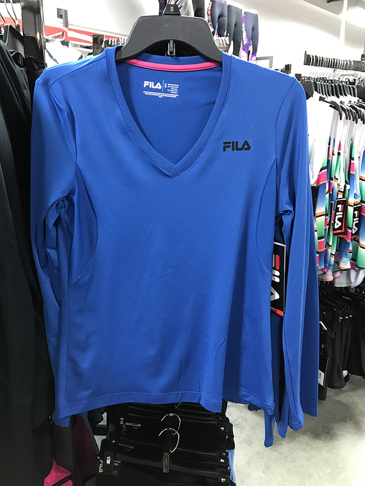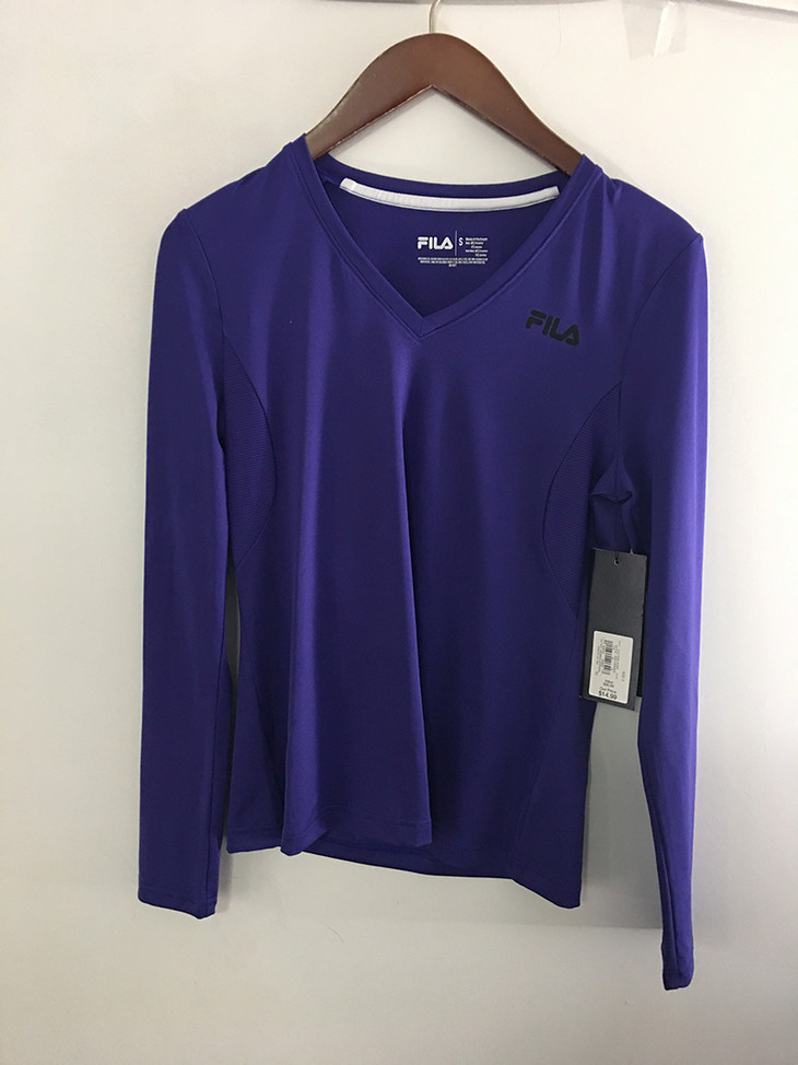 纽约大宝 Fila/斐乐 女士运动速干衣透气跑步健身V领纯色长袖T恤