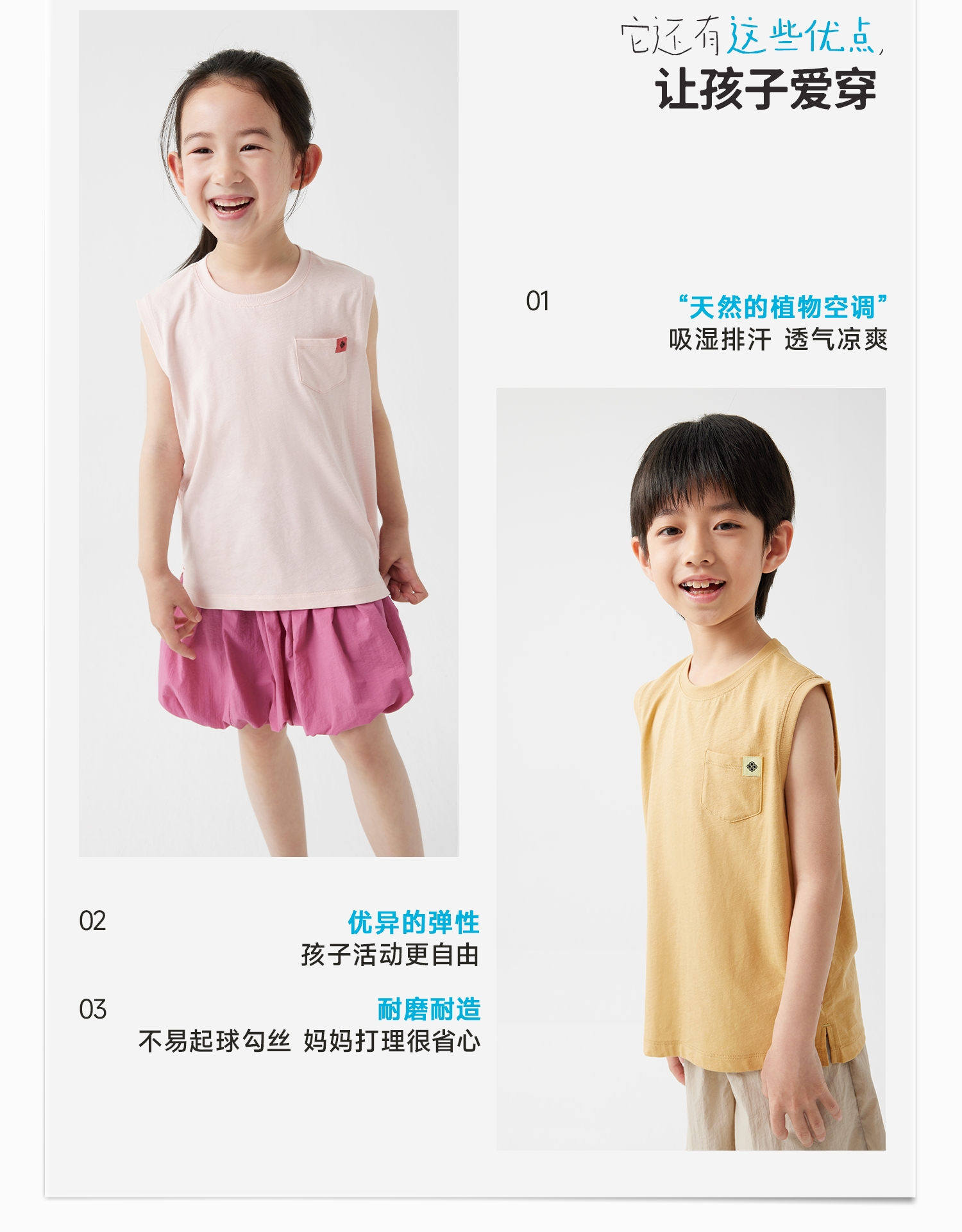 【夏Vol.3】幼岚「柔软汉麻」小褂背心吸湿排汗耐磨耐造24夏季新款儿童背心ZY
