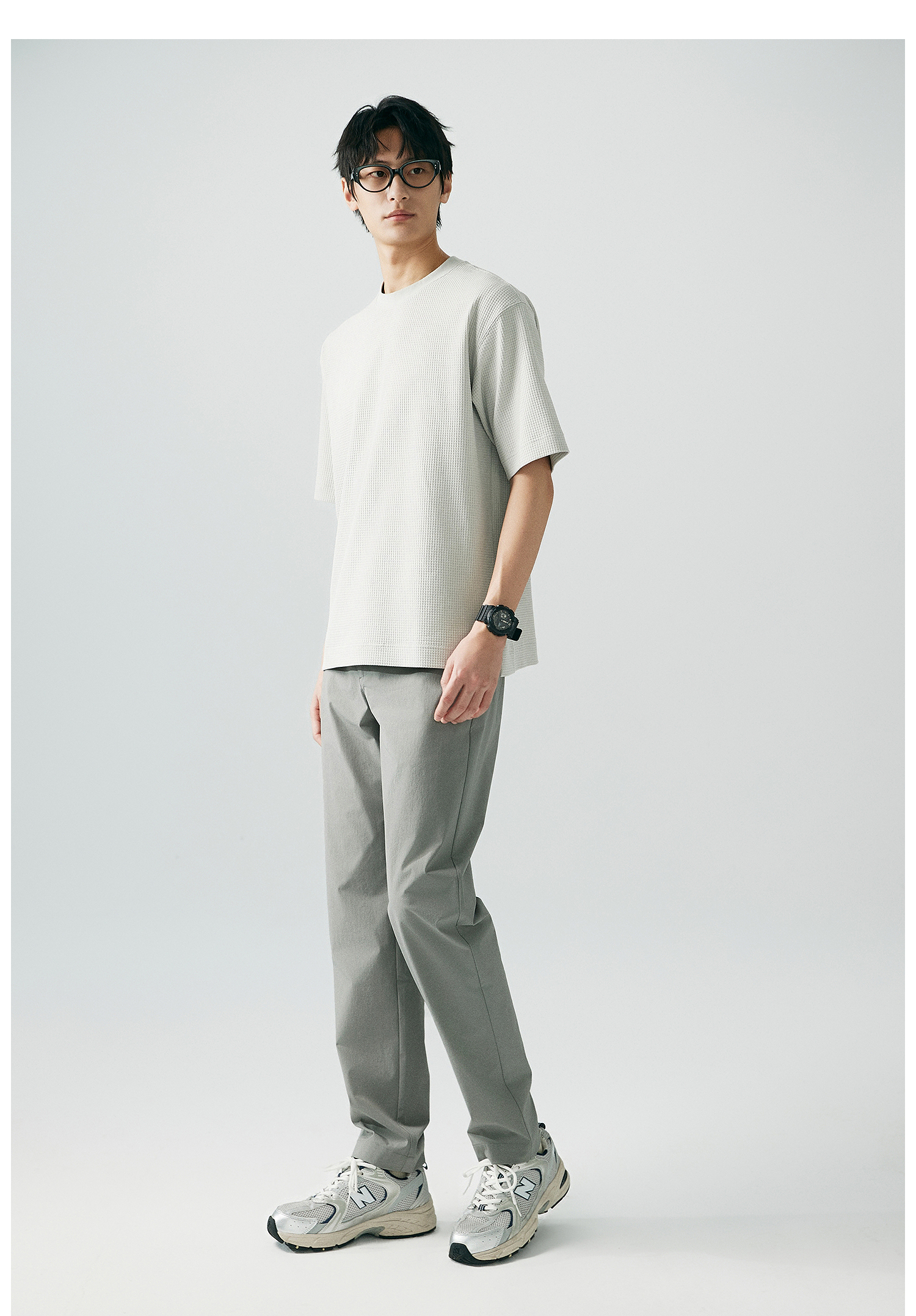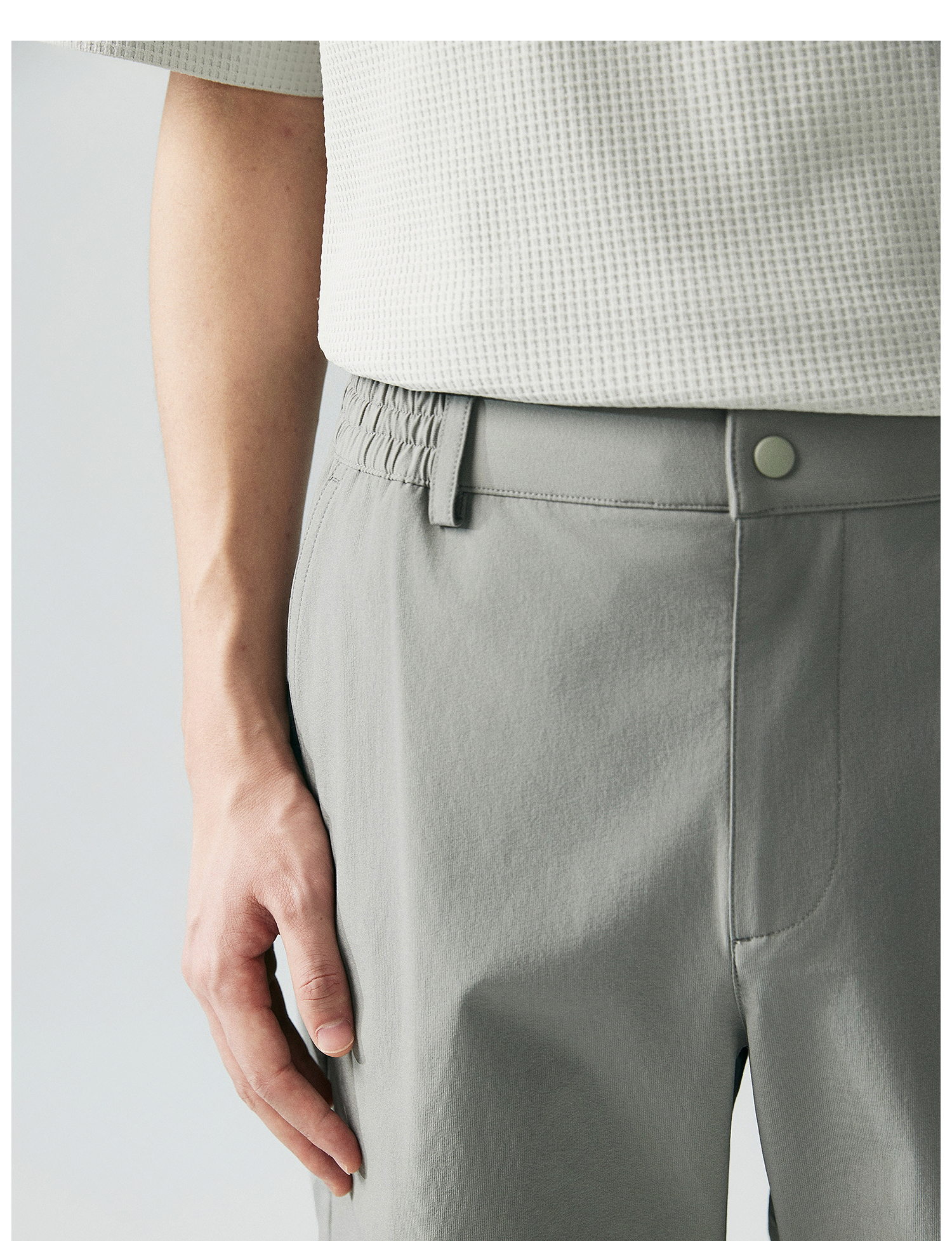 棉仓363818015-尼龙四面弹微皱肌理松紧腰小锥裤