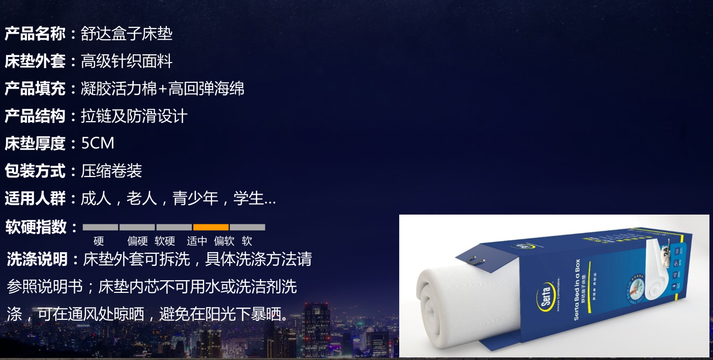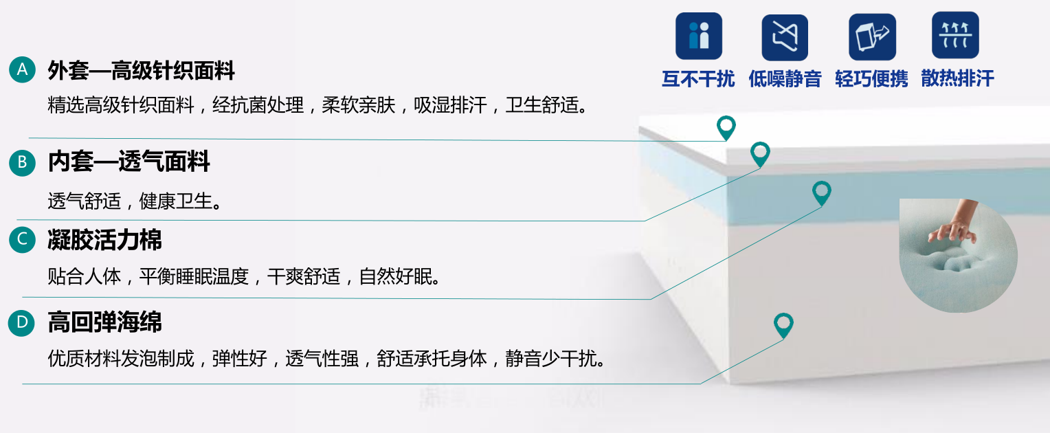 主材:凝胶活力棉+高回弹海绵+针织面料