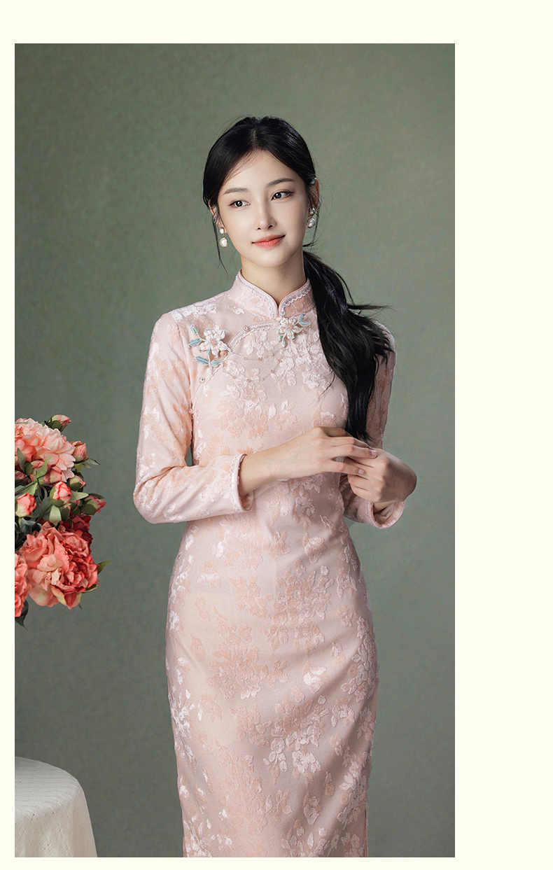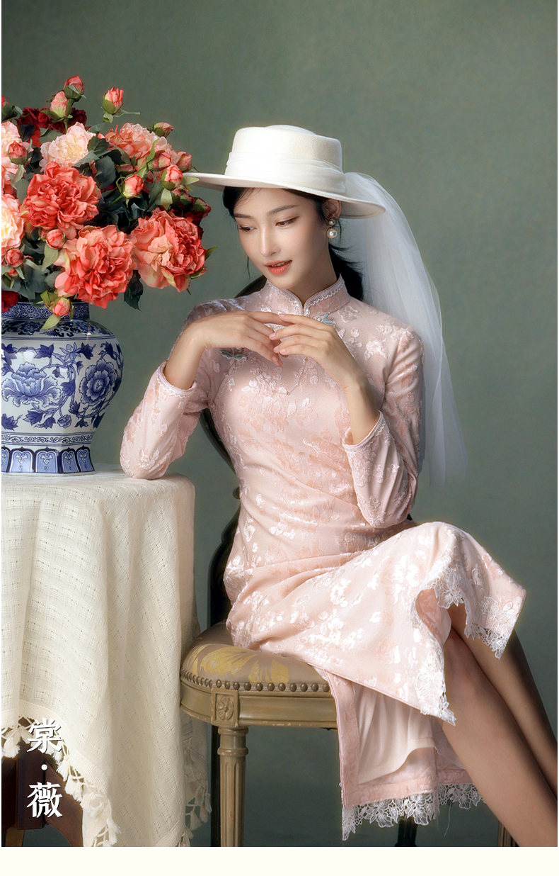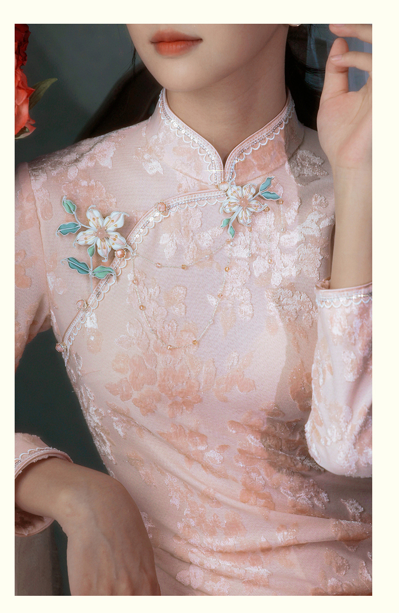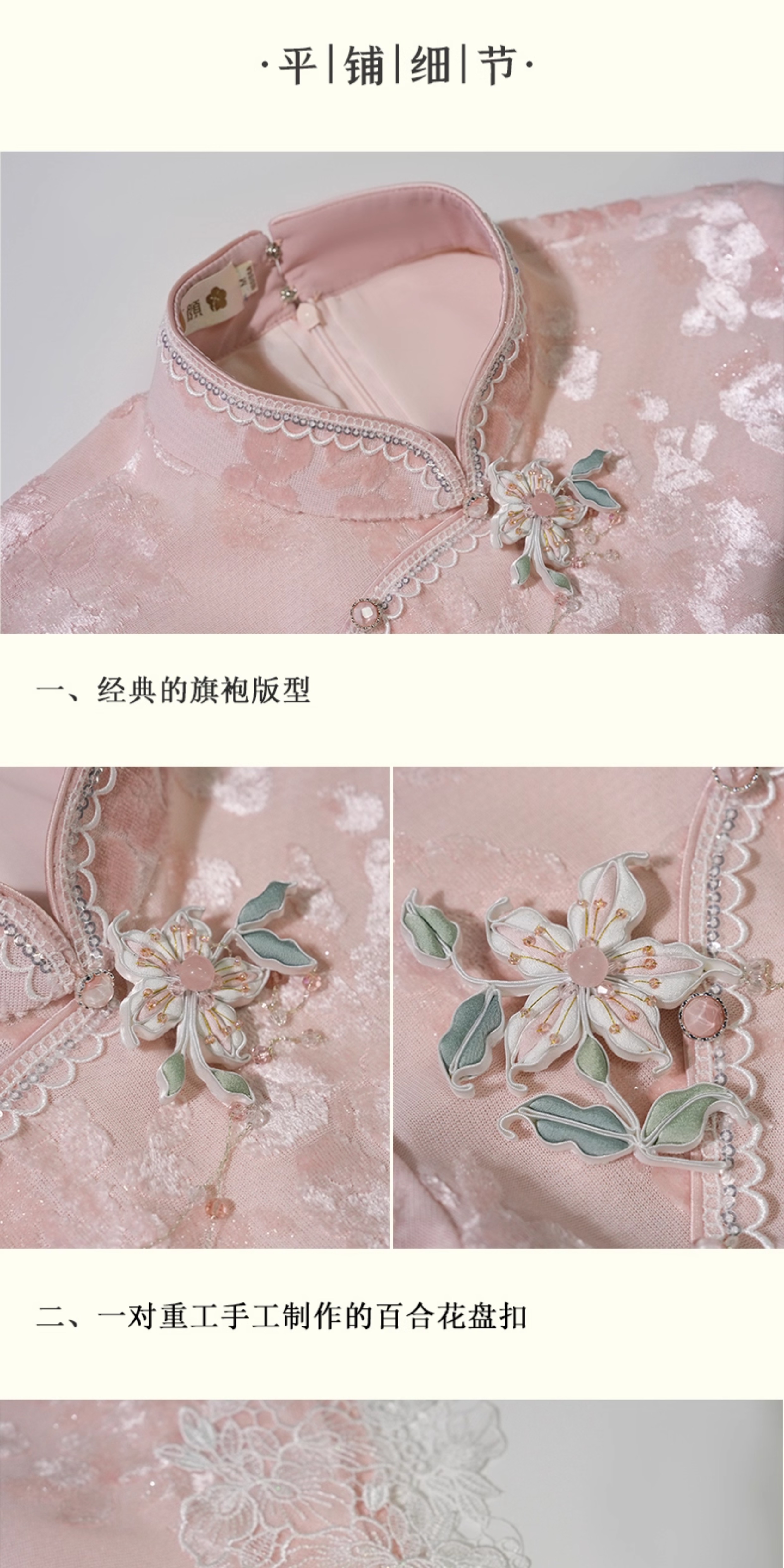 逸红颜棠微2025秋新款弹力植绒非遗百合怀表式盘扣经典复古旗袍女