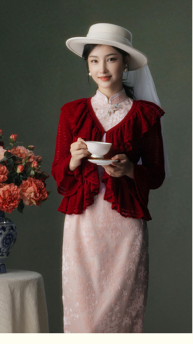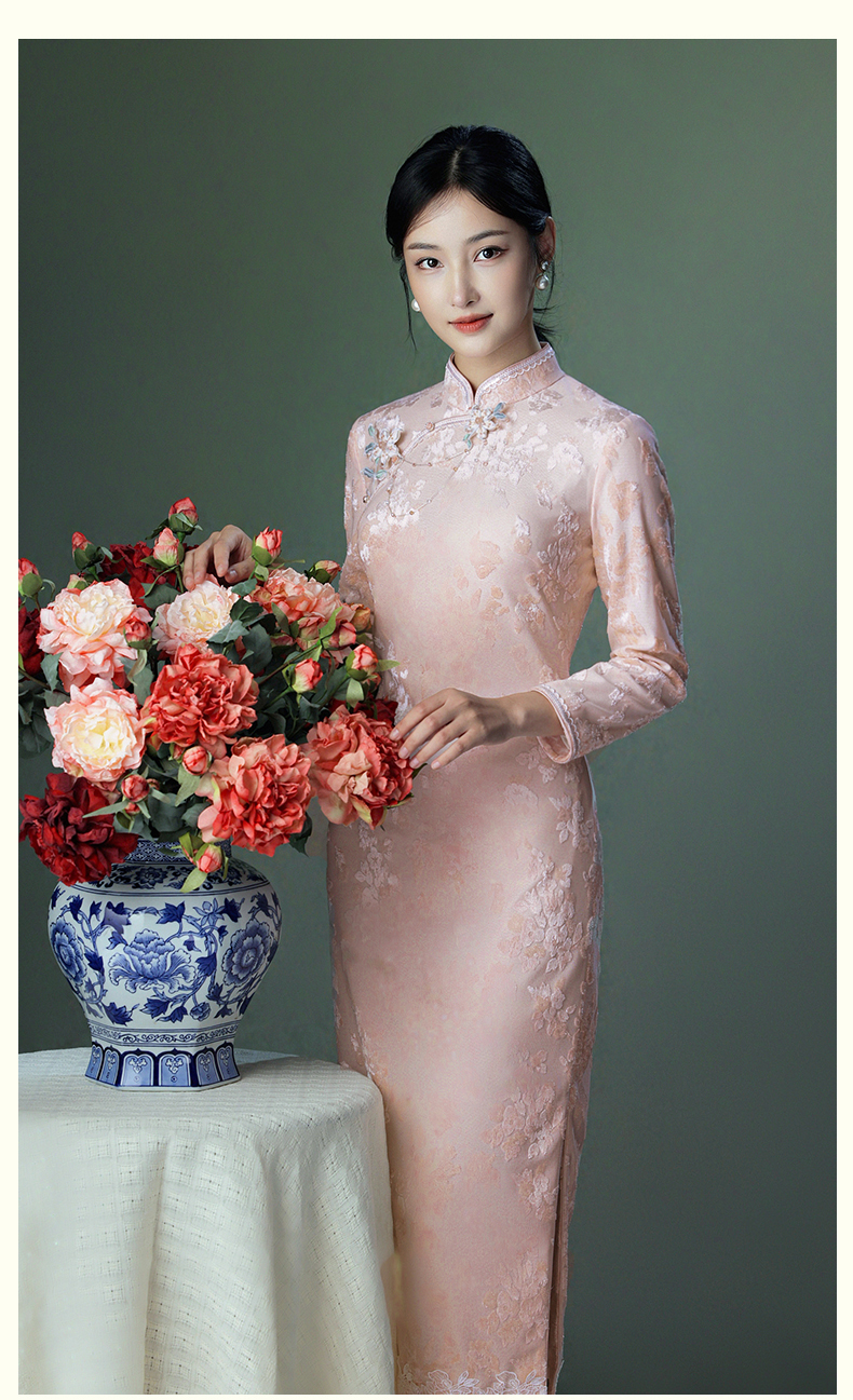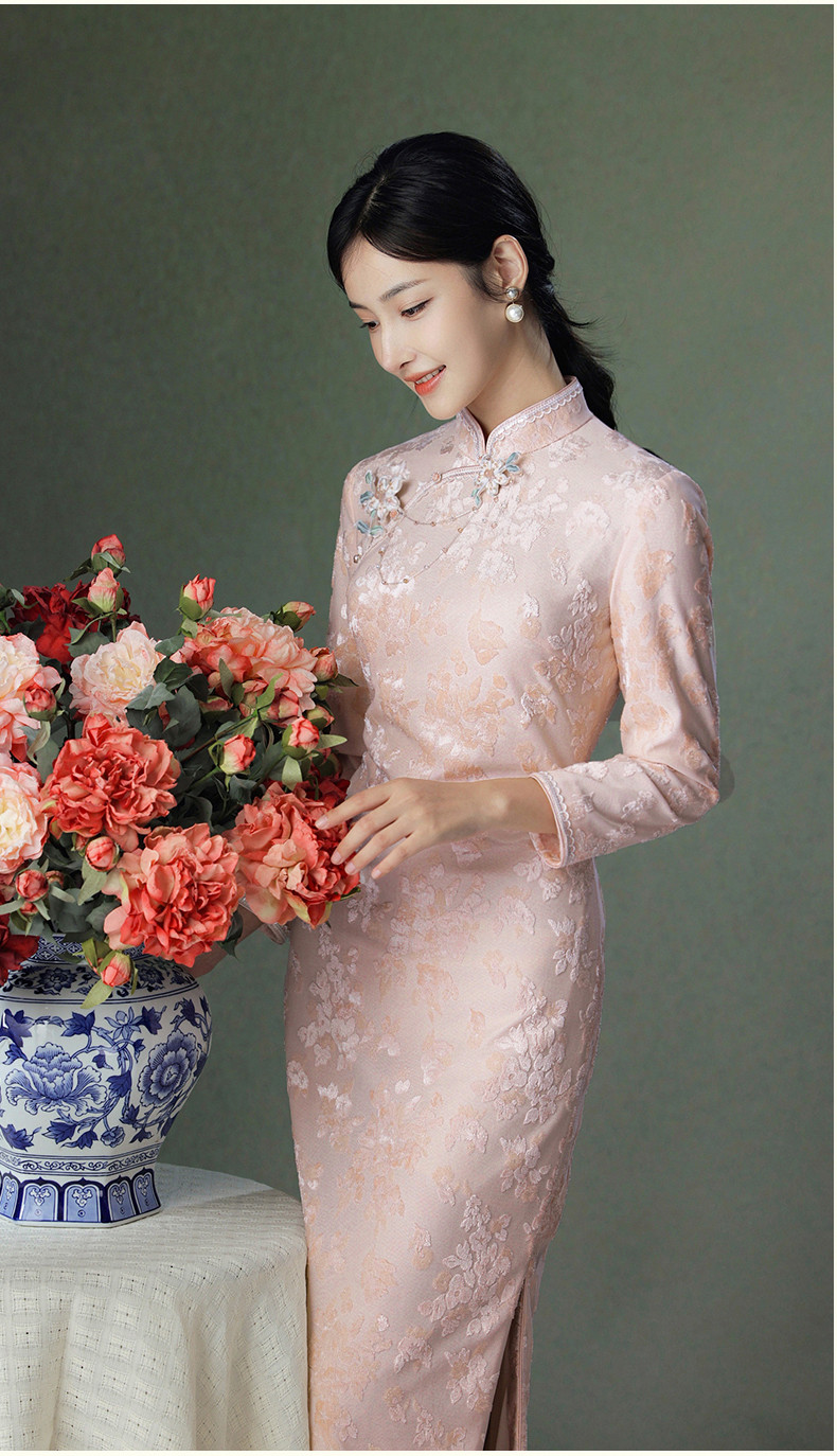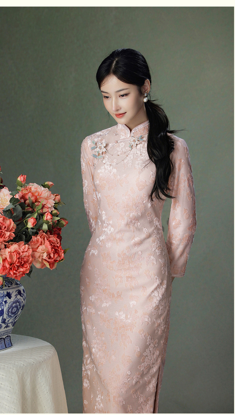 逸红颜棠微2025秋新款弹力植绒非遗百合怀表式盘扣经典复古旗袍女