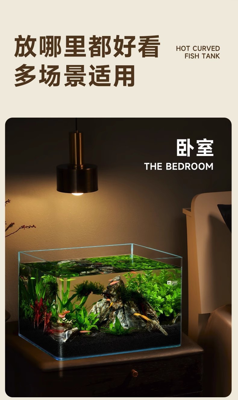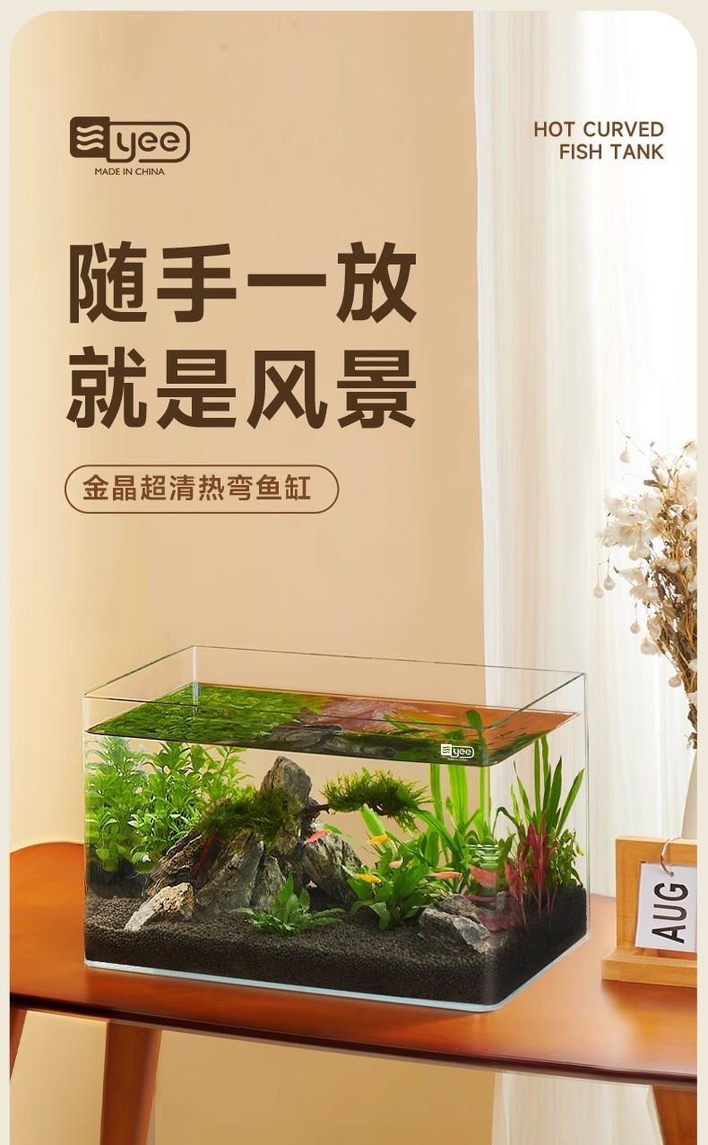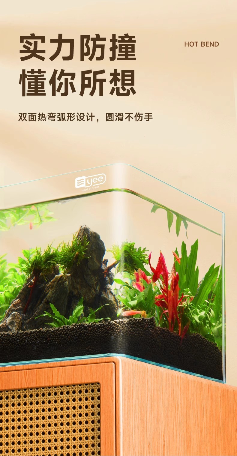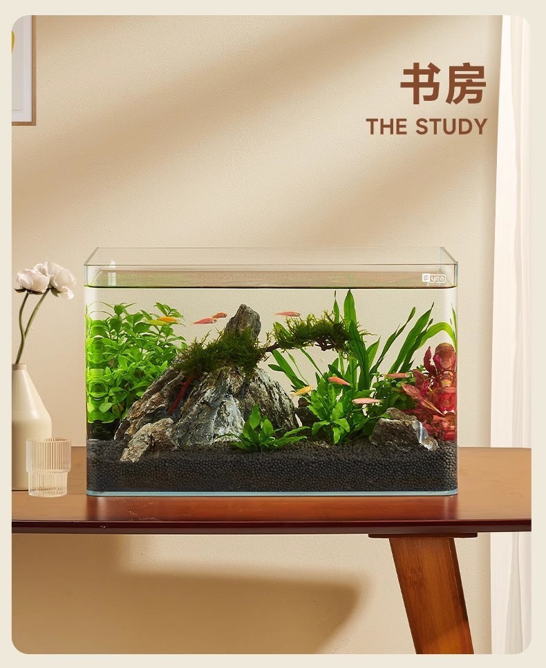 严选超清玻璃热弯鱼缸【40x24x25CM】桌面小型水族箱客厅水草造景生态缸1个
