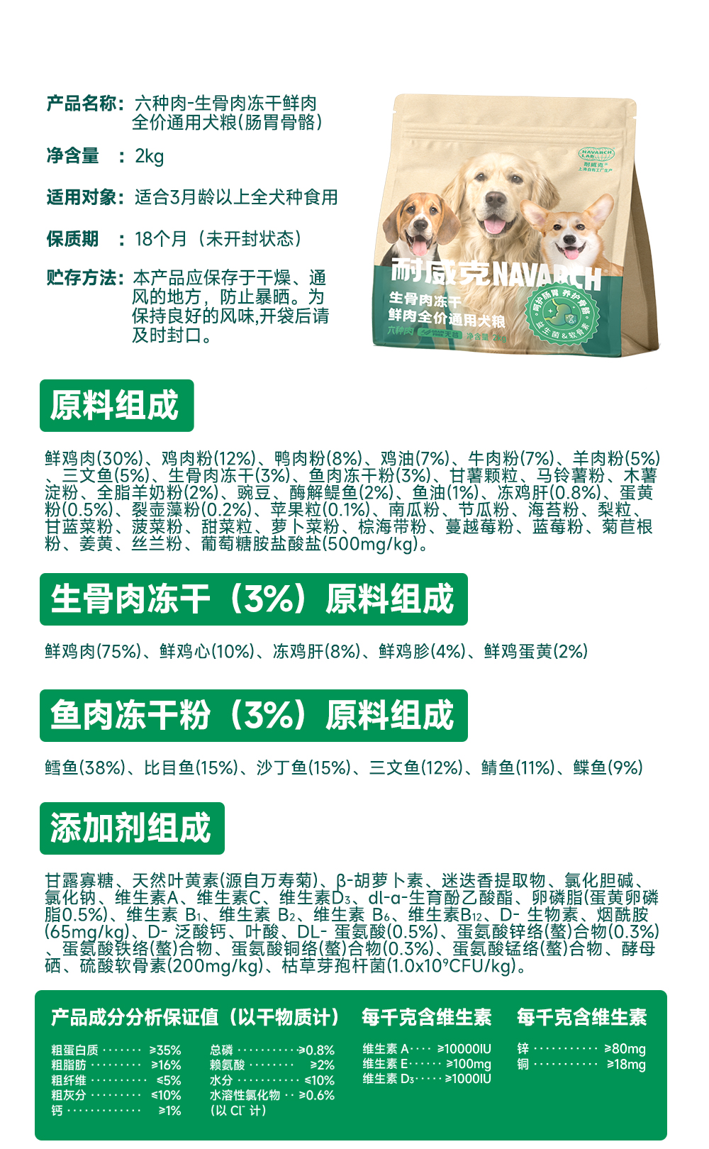 极鲜六种肉冻干犬粮|臻鲜六种肉|0谷物|32种生长元素