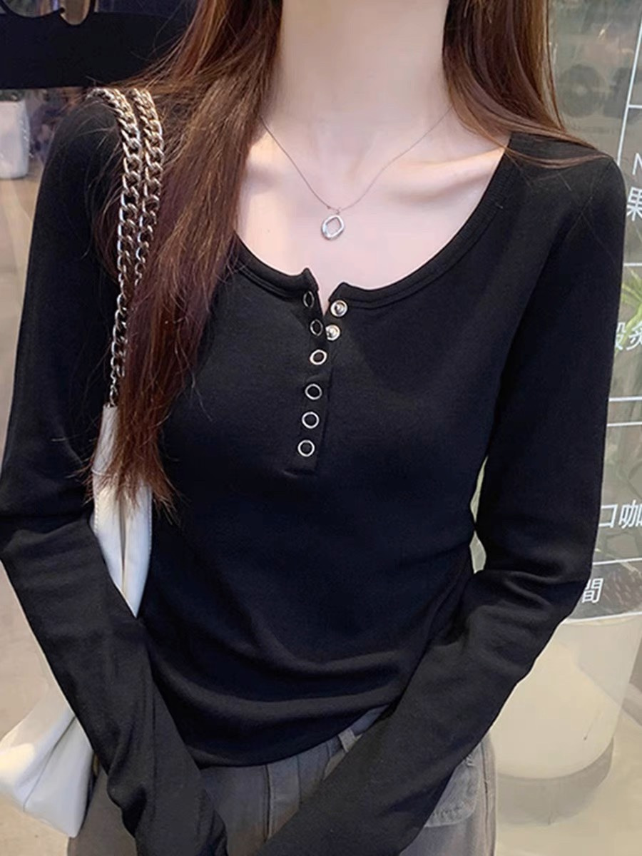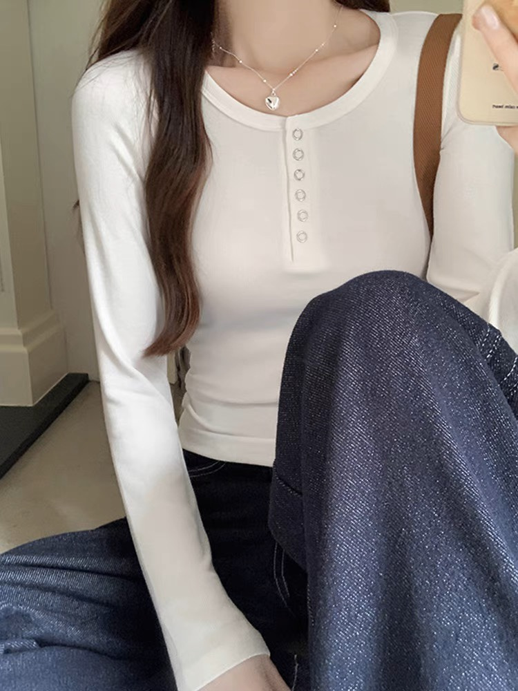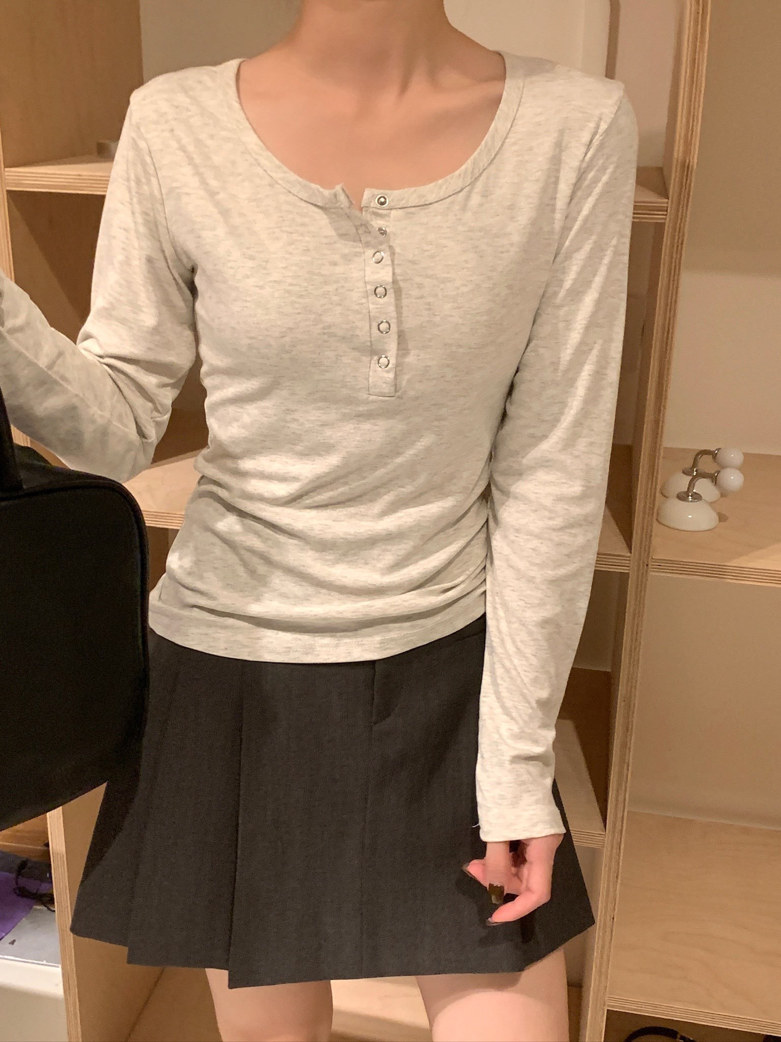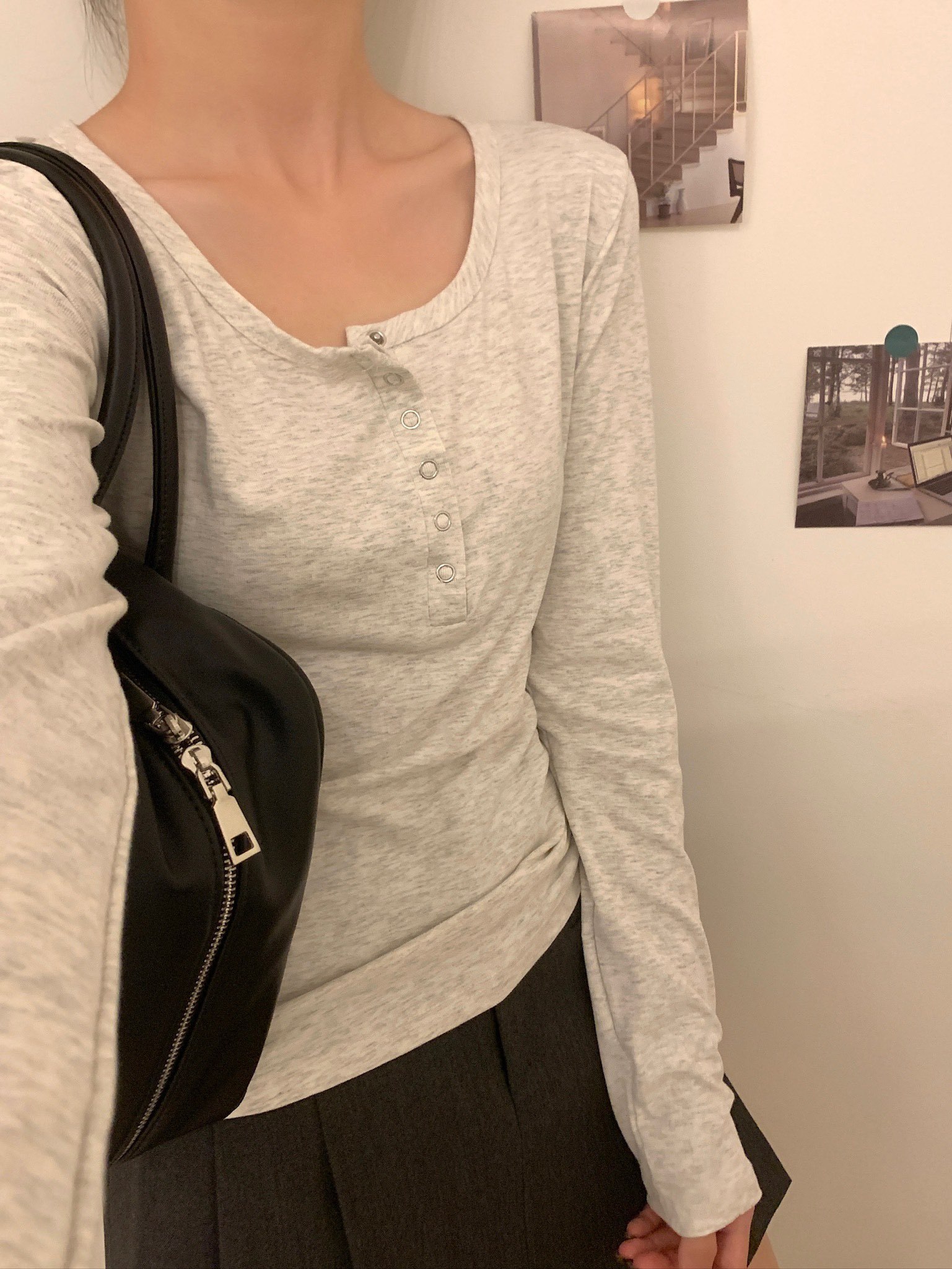 【家居百货】【小蛮腰长袖Tee】正肩排扣设计,穿上有胸有腰!拉高身线,轻松打造A4腰,冲冲冲 巨巨巨百搭 Tee上线 闭眼买好看的很👍