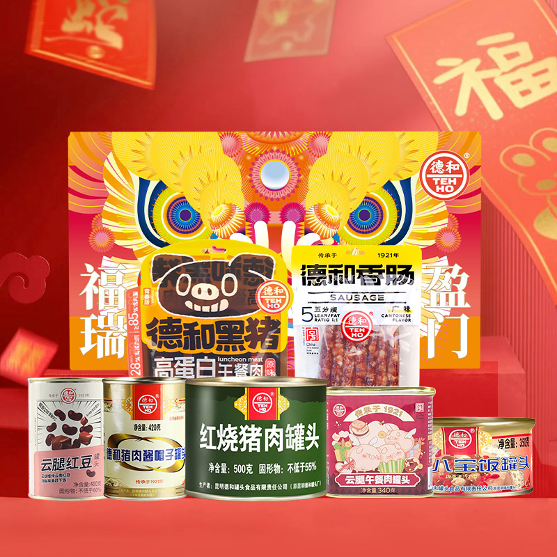 德和 百元礼包 香肠 黑猪午餐肉 红烧肉 八宝饭 5荤2素 新年年货礼包 #礼包