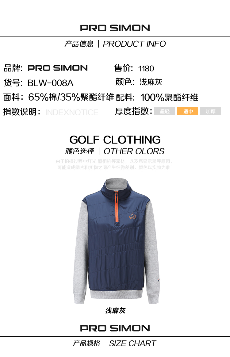 BLW-008A(PROSIMON高尔夫秋冬男款时尚半开拉链款套头衫)