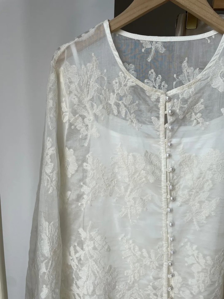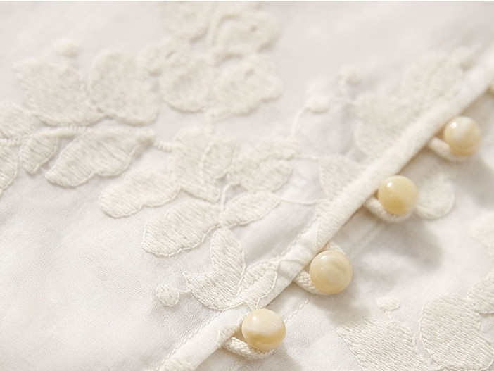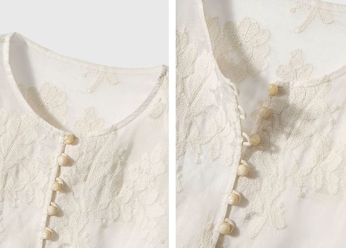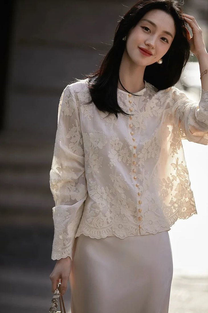 而重工花朵刺绣更是点睛之笔,每一针每一线都透露着匠心与细腻,将繁花盛开的美好瞬间永远留在衣衫上。