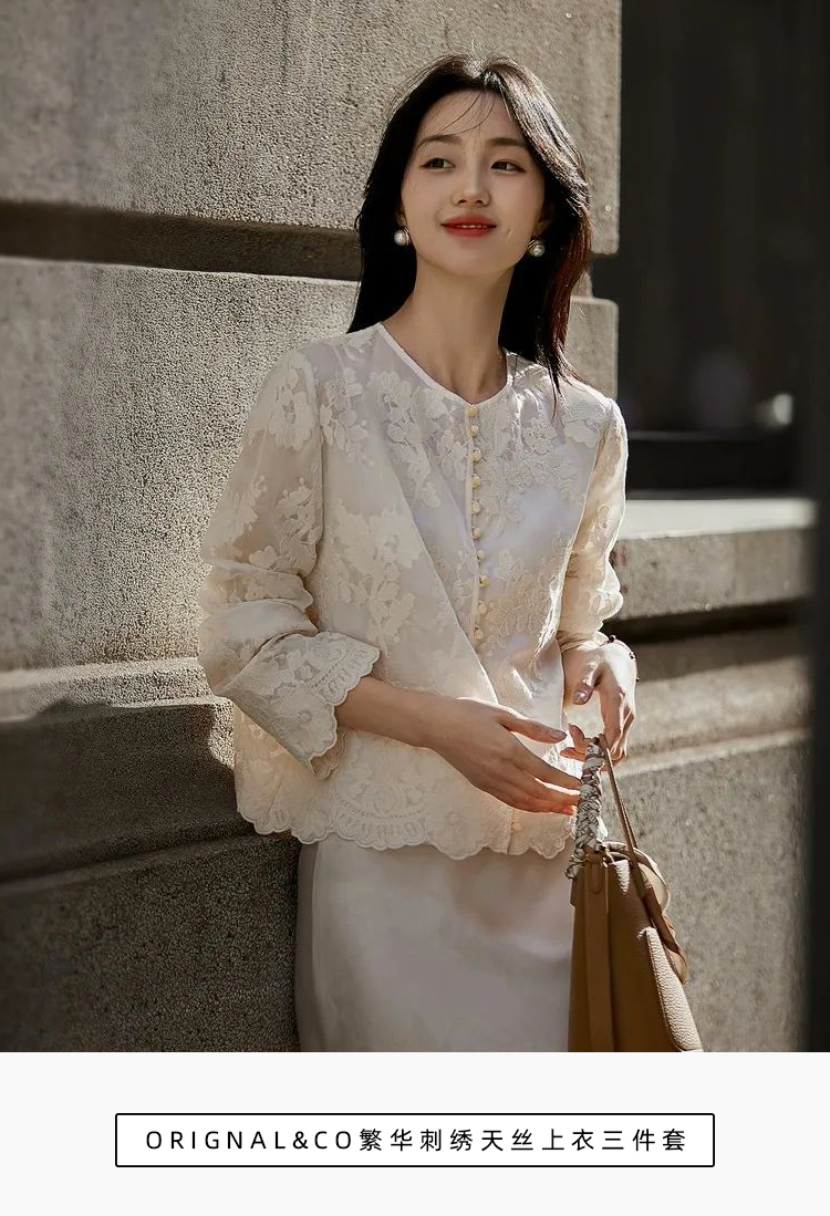 ORIGNAL&CO繁华刺绣天丝上衣三件套 | 优选天丝面料、重工花朵刺绣,太优雅了【3-5天发货】
