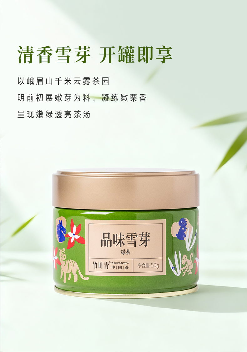 竹叶青绿茶特级茶叶明前2025年新茶四川竹叶青茶叶自己喝熊猫罐装