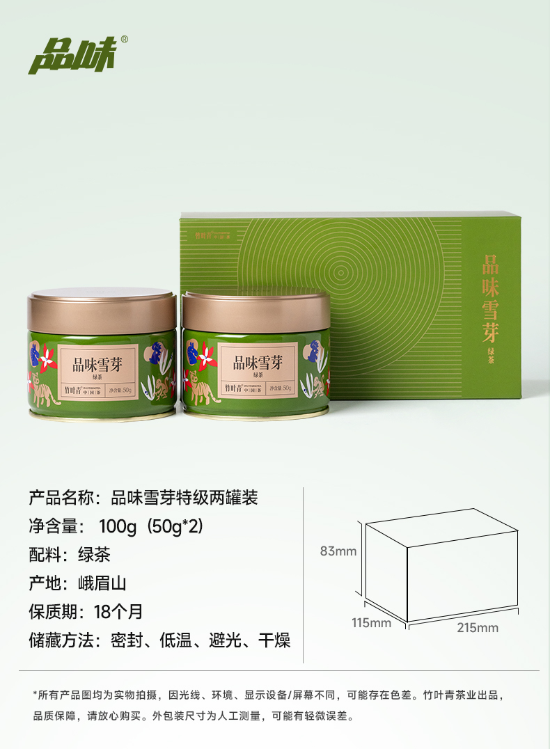 品味雪芽绿茶(特级)茶叶两罐装100g