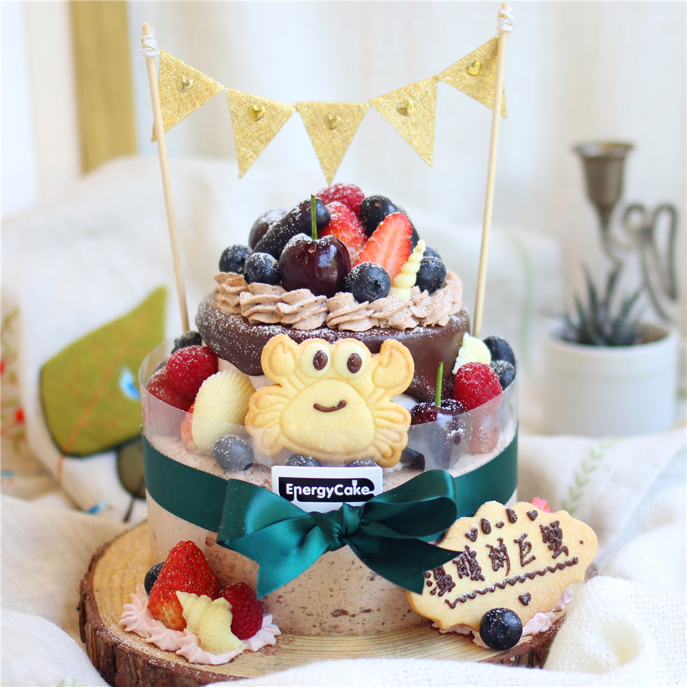 蛋糕:上层原味戚风蛋糕,下层可可戚风蛋糕