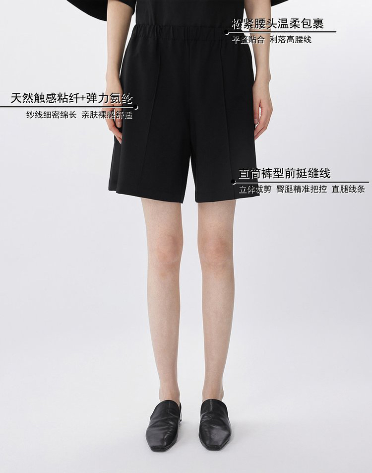 休闲松紧直筒短裤 云感呼吸裤 挺缝线塑黄金腿型 松紧腰头 解锁全天自由感 天然垂坠感 + 智能回弹性 行走的高级感