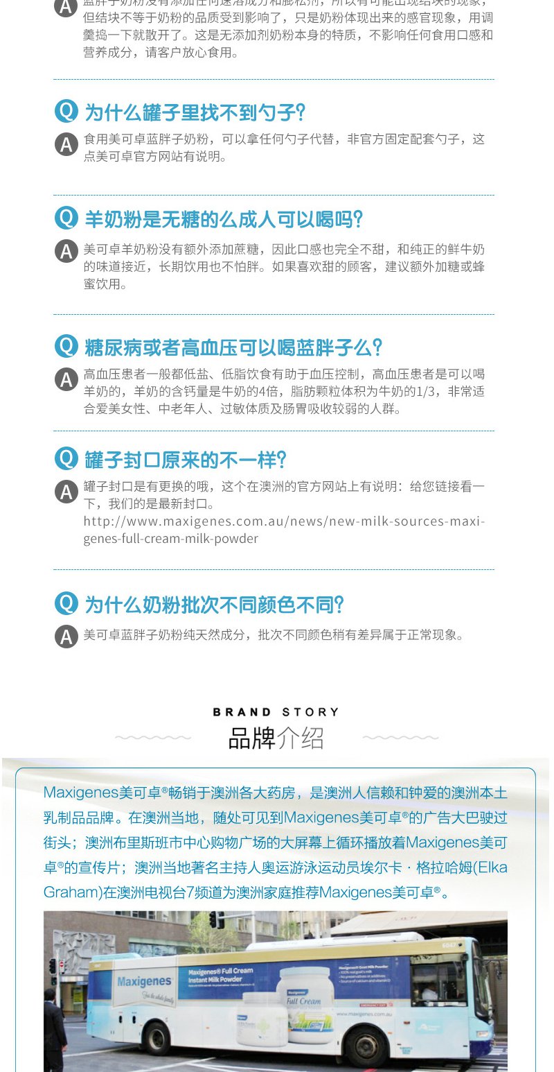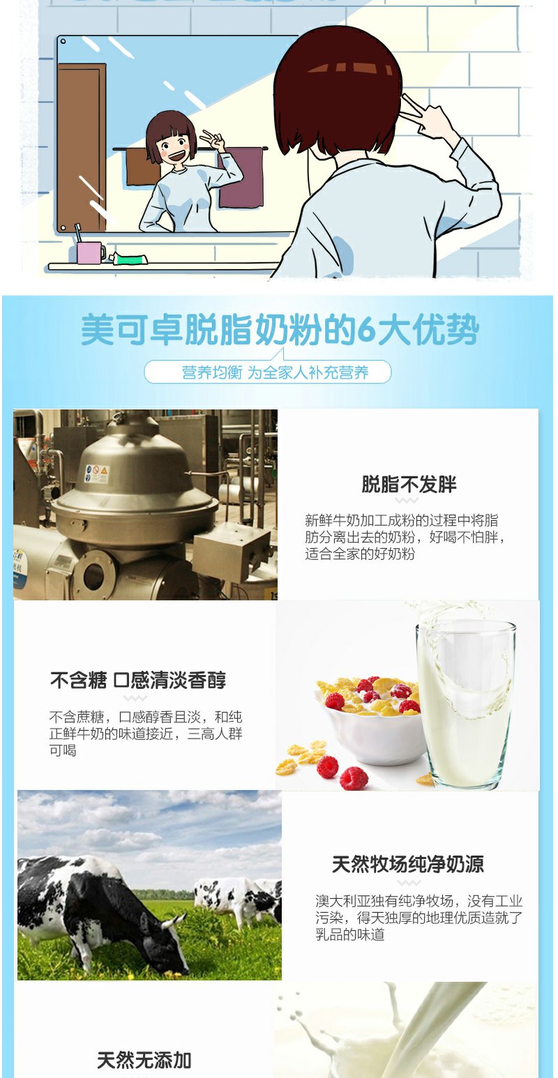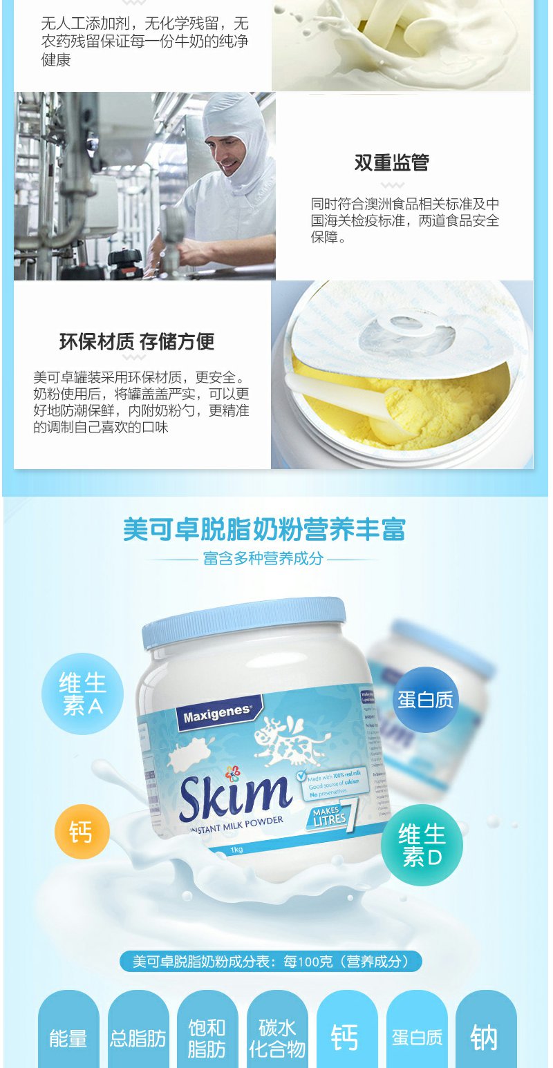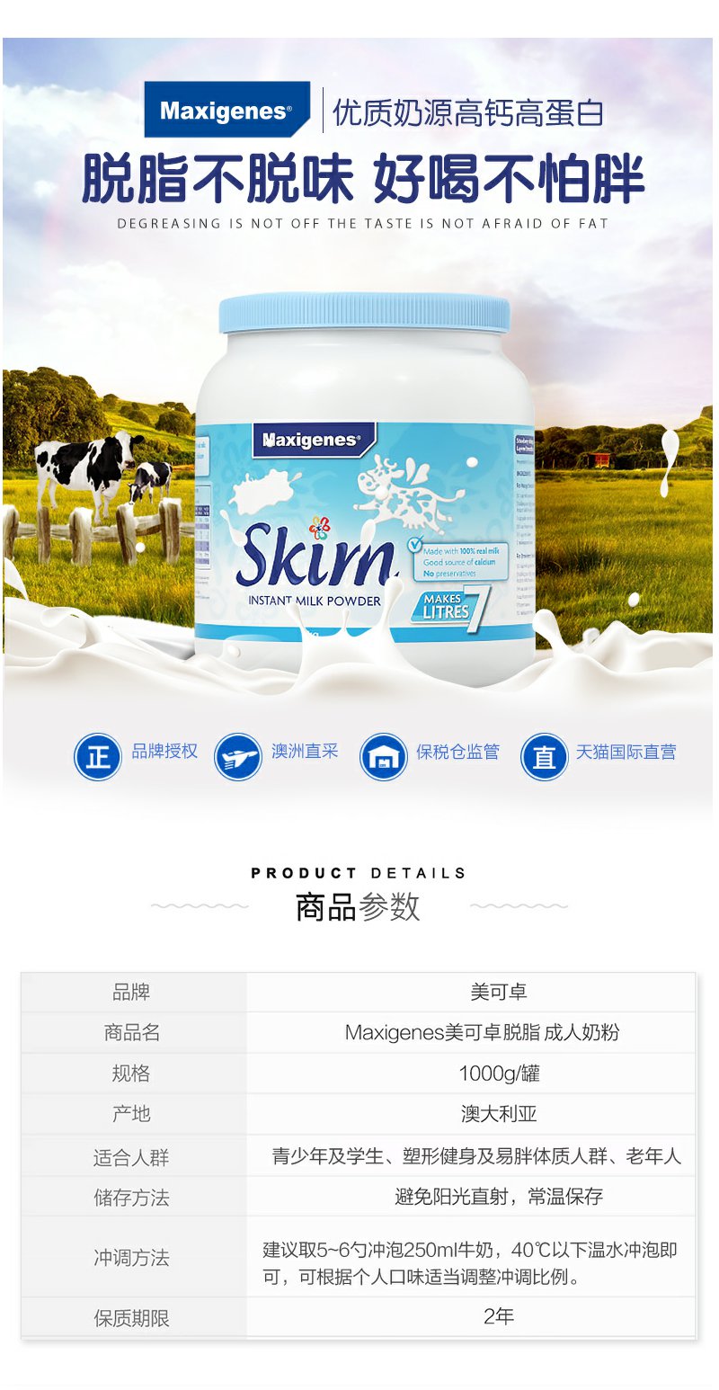 【保税区】Maxigenes蓝胖子美可卓脱脂成人奶粉罐装青少年儿童营养牛奶粉