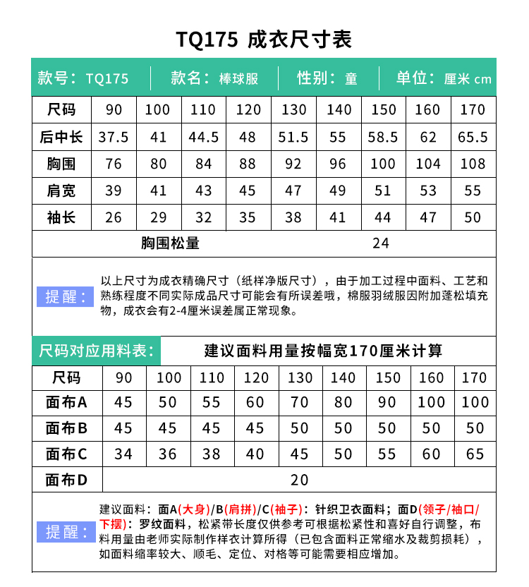 裁缝学苑TQ175男童棒球服外套纸样儿童童装开衫上衣服装打板