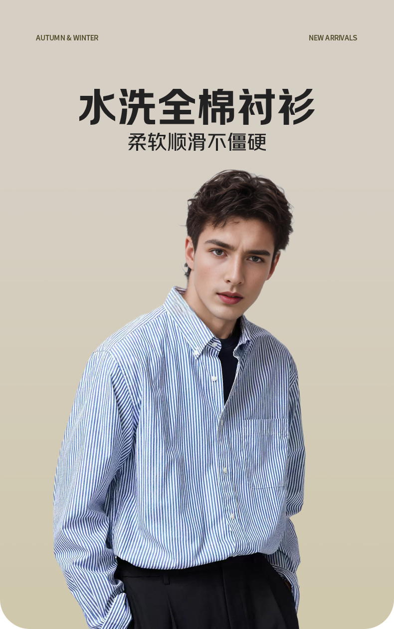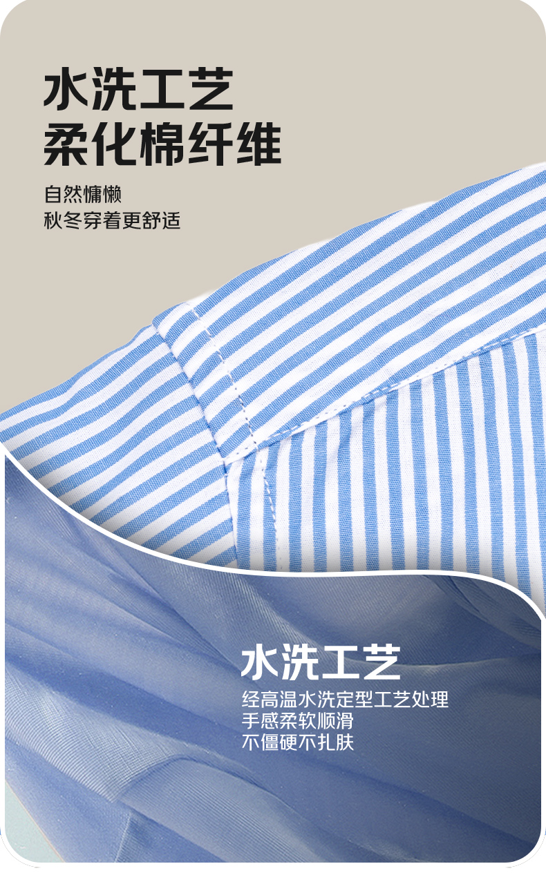 【水洗工艺】占姆士男士春秋新款100%全棉休闲条纹男长袖衬衣