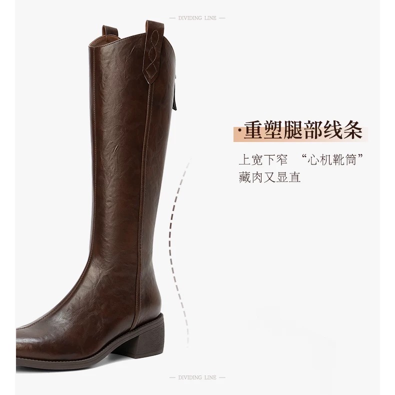 【云粉节】BF楼森达长筒靴2025冬季新款显瘦抓纹粗跟靴子4QH80吊牌价899活动价399