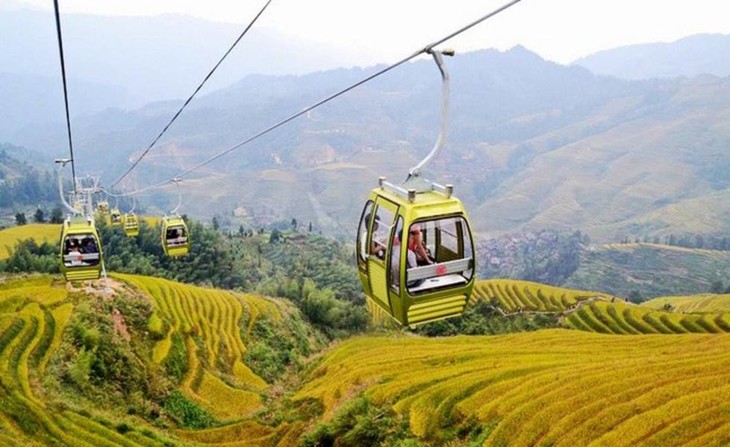 坐高空缆车"一览众山小,俯瞰烟雨云霞下万亩梯田花海和梦幻田园让人春心荡漾,浪漫心爽。