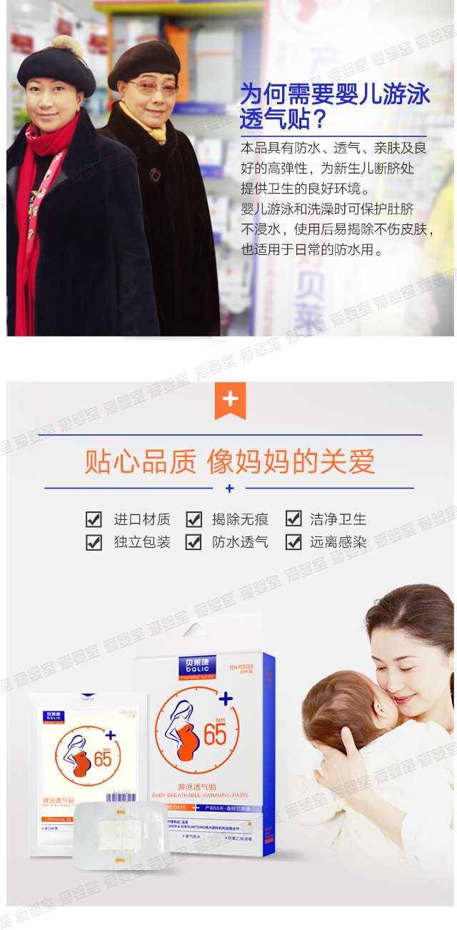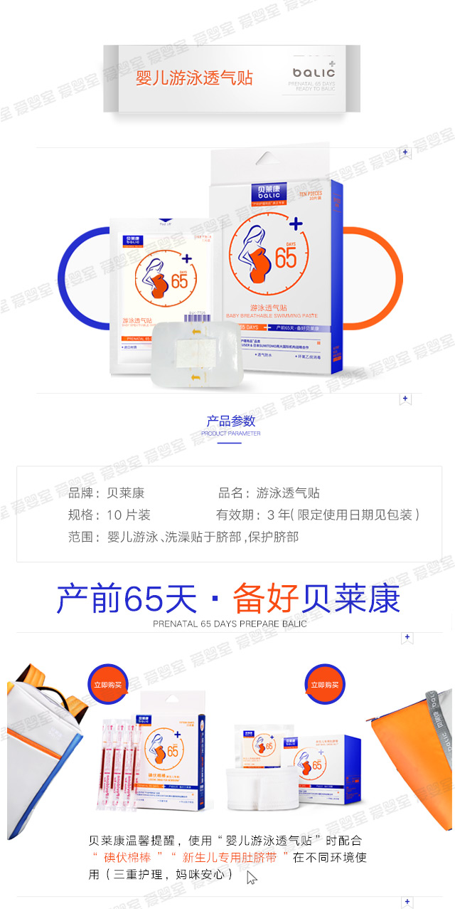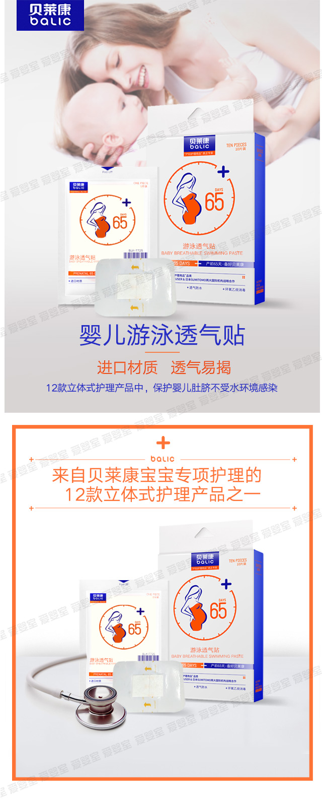贝莱康10贴装婴儿游泳贴 透气防水 BLK-7722