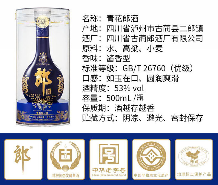 郎酒青花郎 酱香型白酒500ml(53度)