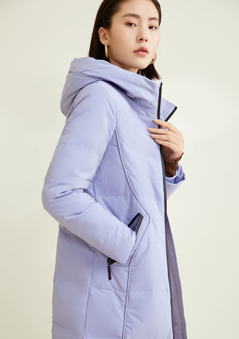 玳莎连帽羽绒服女士纯色简约百搭通勤秋冬中长款鸭绒外套 CD41307