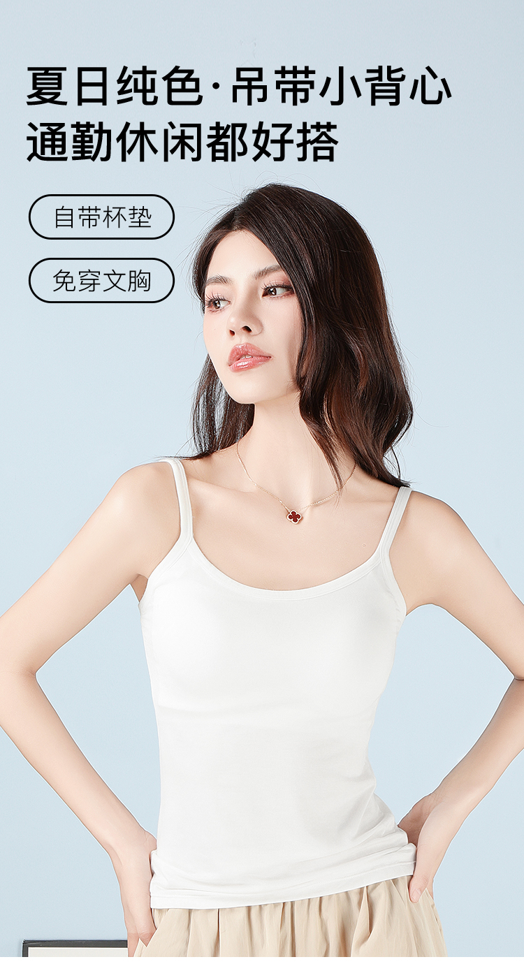 【自带胸垫清爽小凉风】美背修身显瘦女士吊带背心时尚内搭可外穿201纯色细带背心