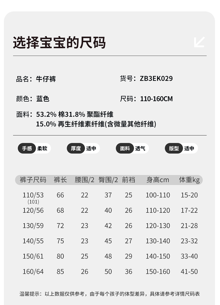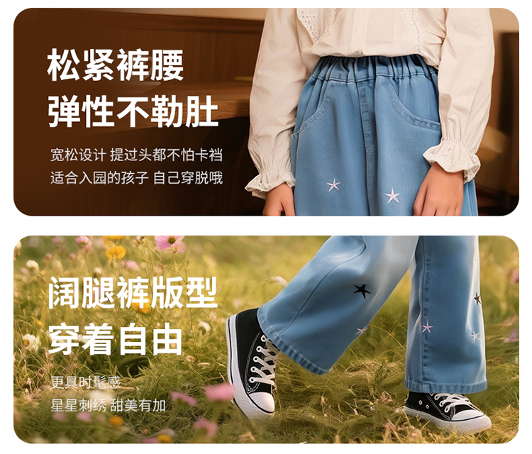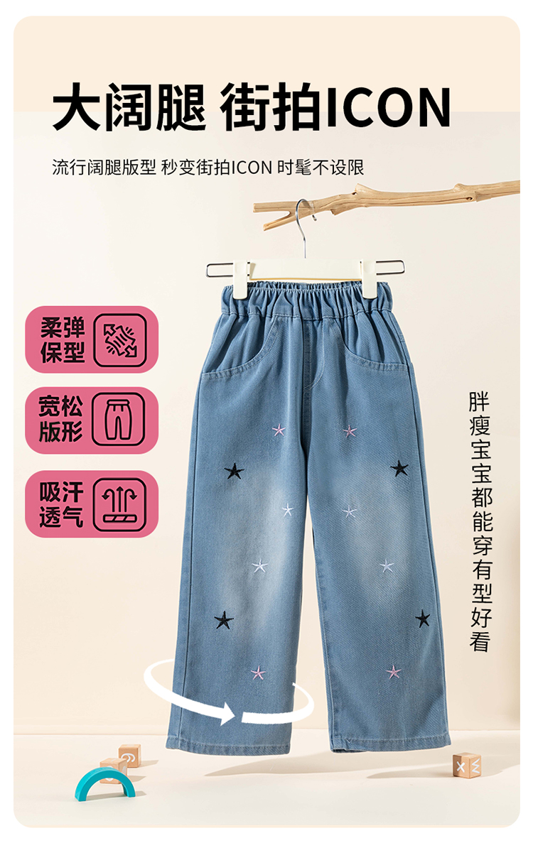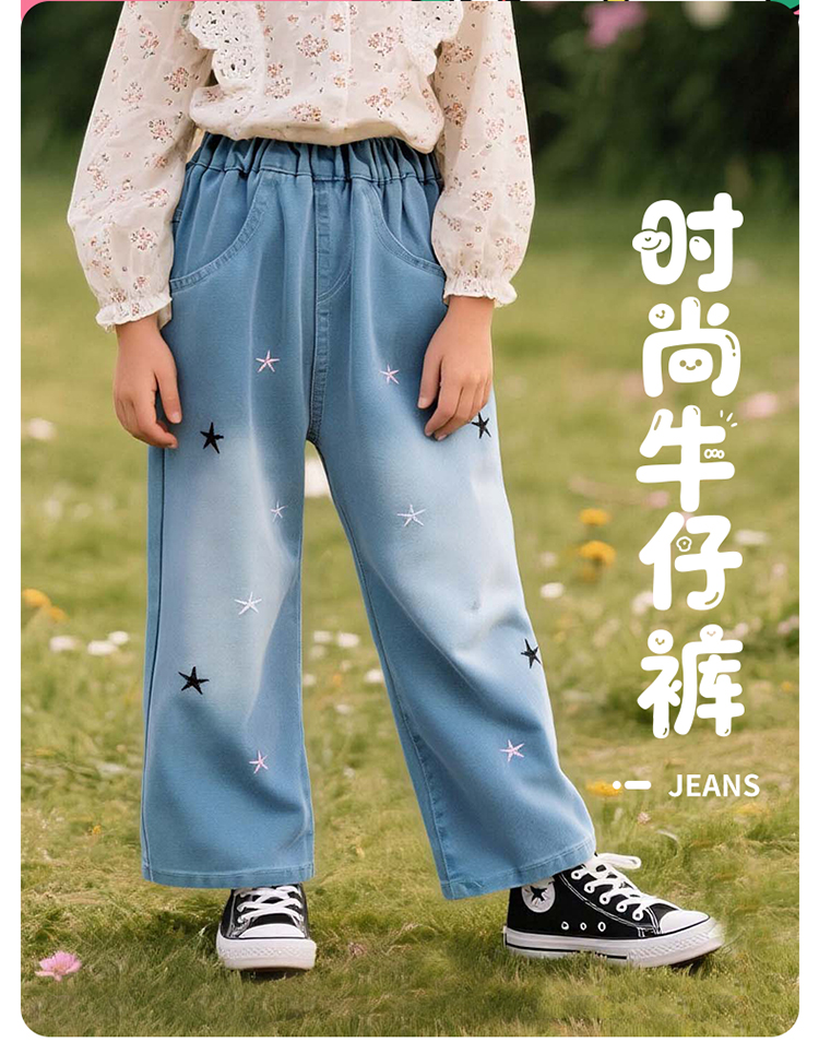 贝贝怡春秋新款女童牛仔长裤中大童直筒裤女孩休闲裤ZB3EK032
