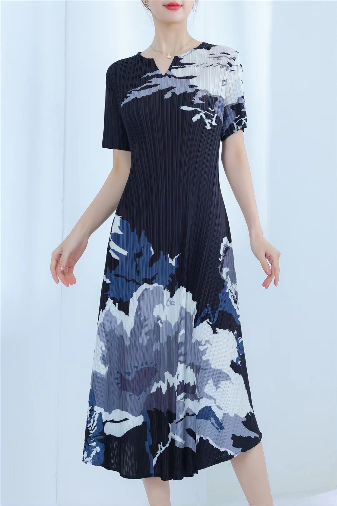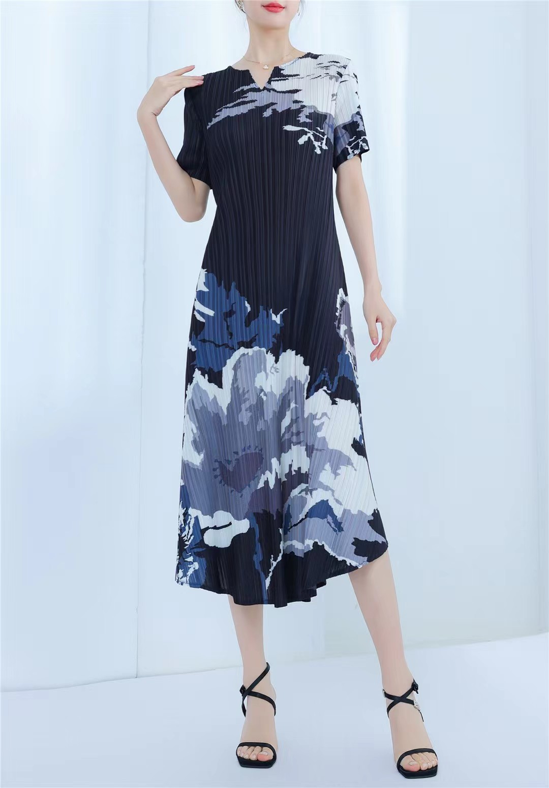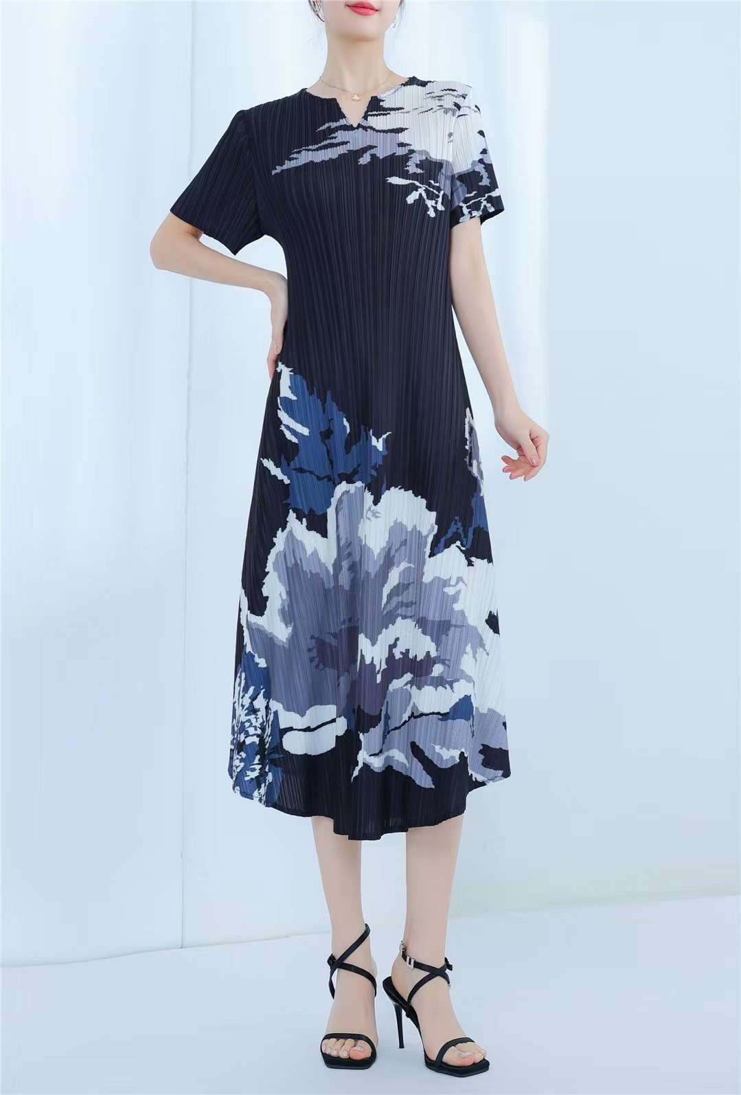 HJ2S98_漆黑色_连衣裙_夏季_轻奢三宅褶皱收腰显瘦气质通勤连衣裙_高级女装_BERNIEELEN 伯妮斯茵