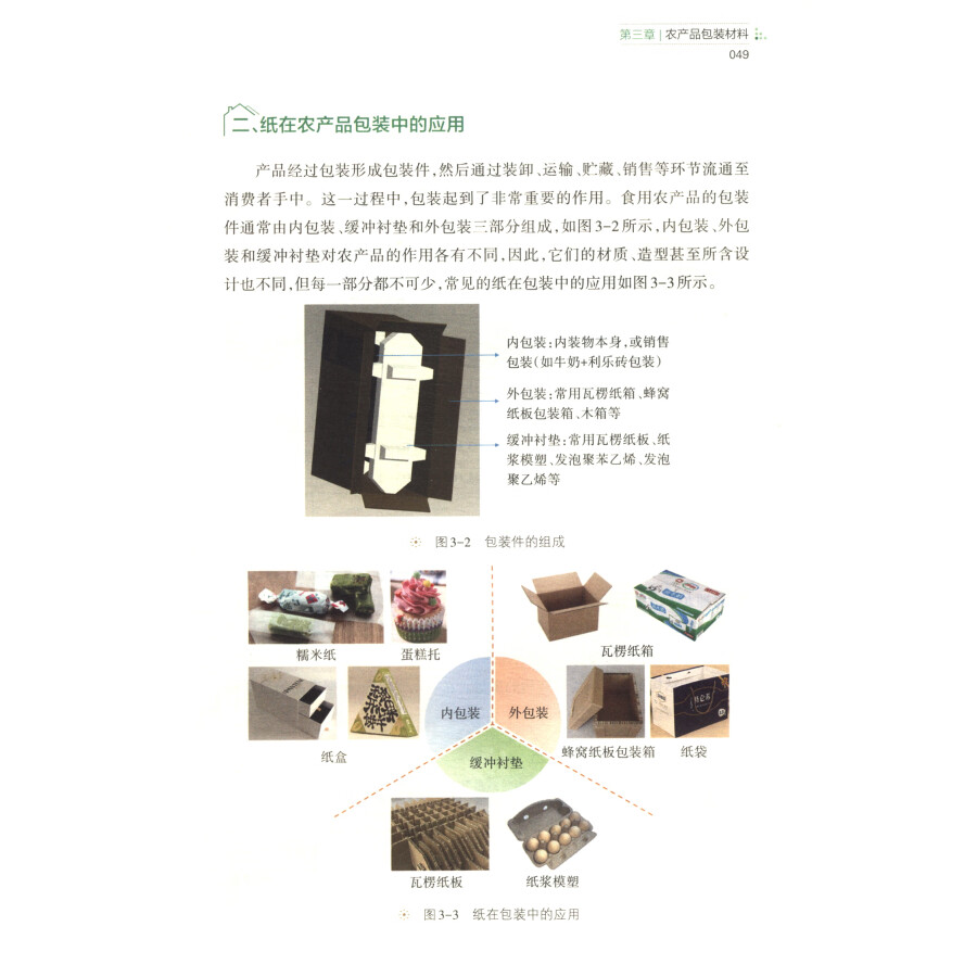 第一章 食用农产品包装设计概述第一节 食用农产品的定义和分类第二节 包装的定义和分类第三节 食用农产品包装的功能第四节 食用农产品包装的现状和问题第五节 食用农产品包装发展趋势第二章 食用农产品品牌包装策划第一节 食用农产品品牌包装第二节 食用农产品包装设计流程第三节 影响食用农产品包装设计的综合因素第四节 农产品包装的相关法规和标准第三章 农产品包装材料第一节 纸第二节 塑料第三节 金属第四节 玻璃第五节 自然生态材料第六节 农产品包装材料选择的影响因素第四章 农产品贮藏与物流包装技术第一节 收缩包装与拉伸包装技术第二节 防氧包装技术第三节 防振包装技术第四节 防霉变包装技术第五章 农产品包装设计实作第六章 农产品的包装设计实例附录