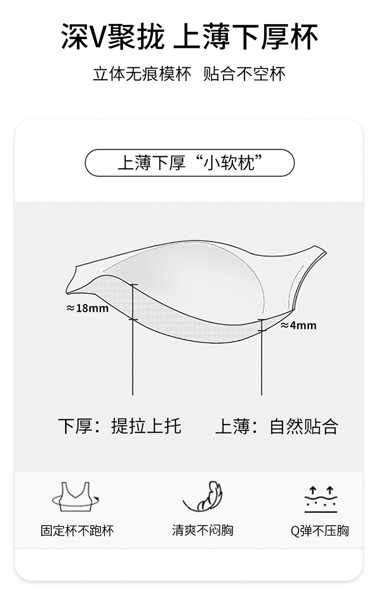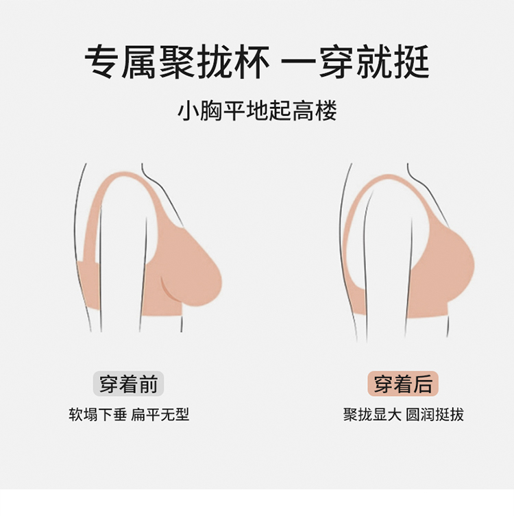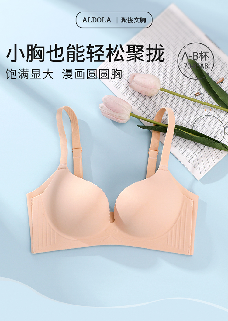 雅黛丽内衣女无痕小胸聚拢显大文胸无钢圈收副乳一片式光面胸罩女