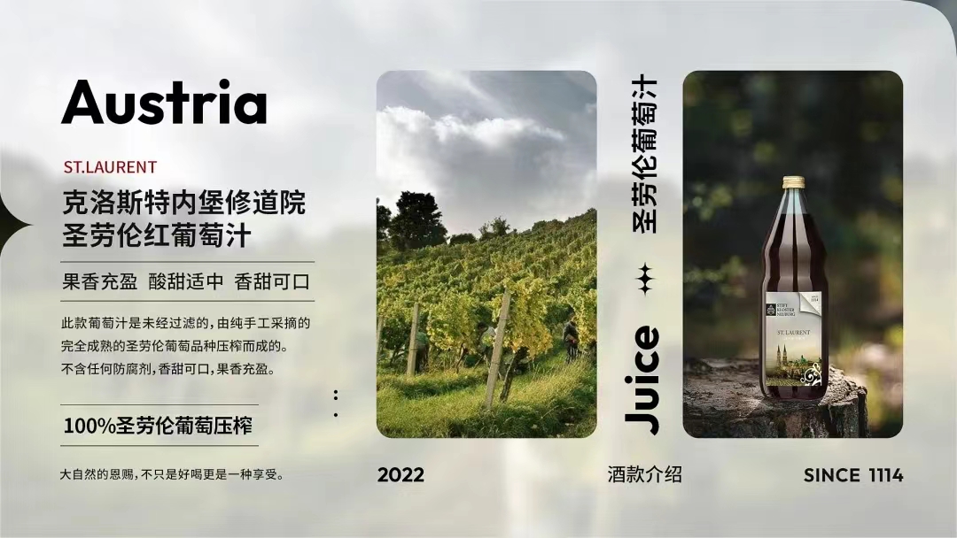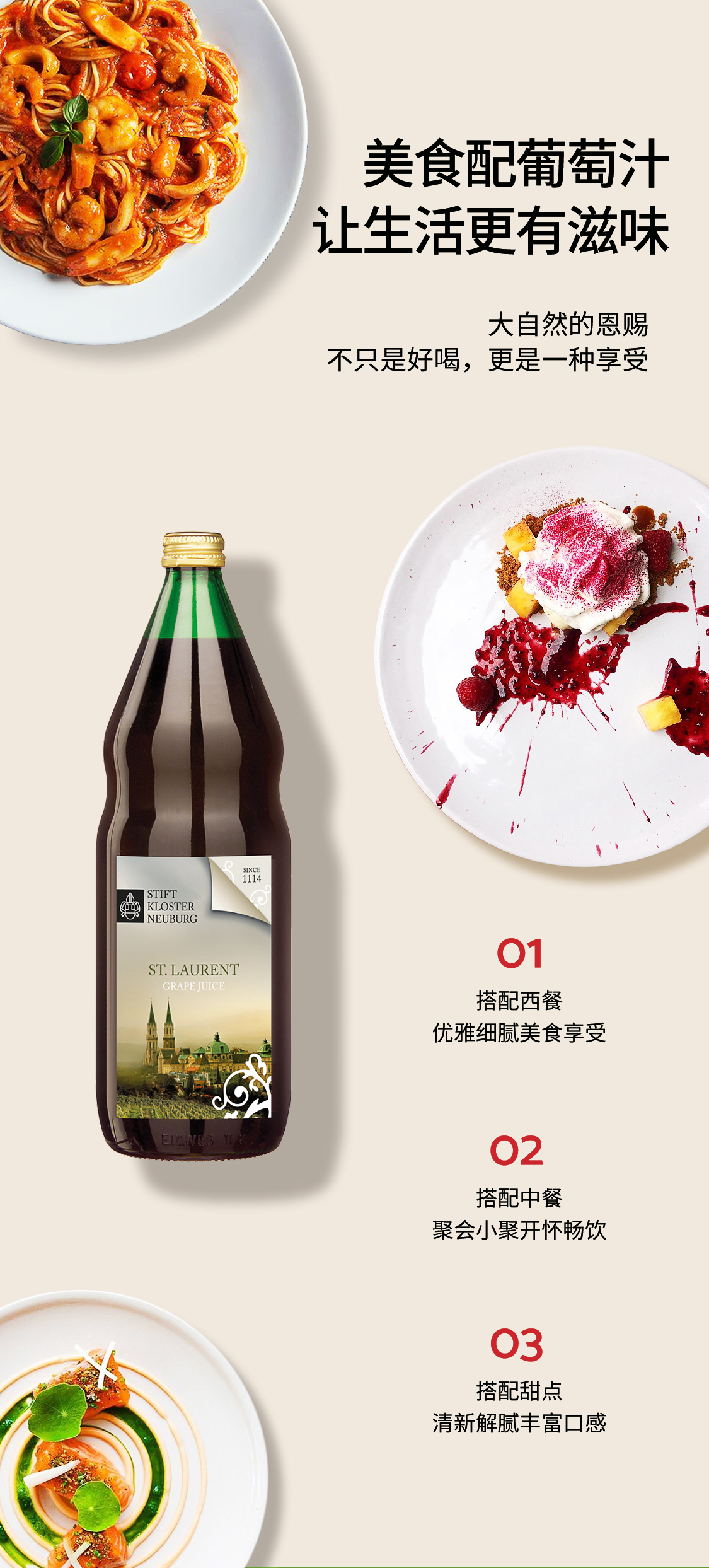 来自音乐之都奥地利的圣劳伦葡萄汁,是大自然的恩赐,不只是好喝,更是一种享受。