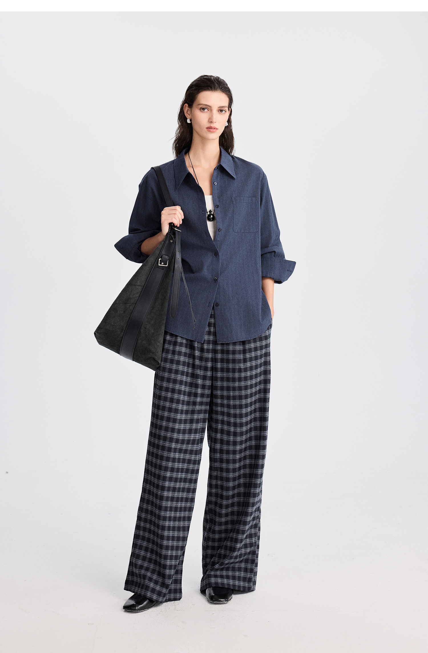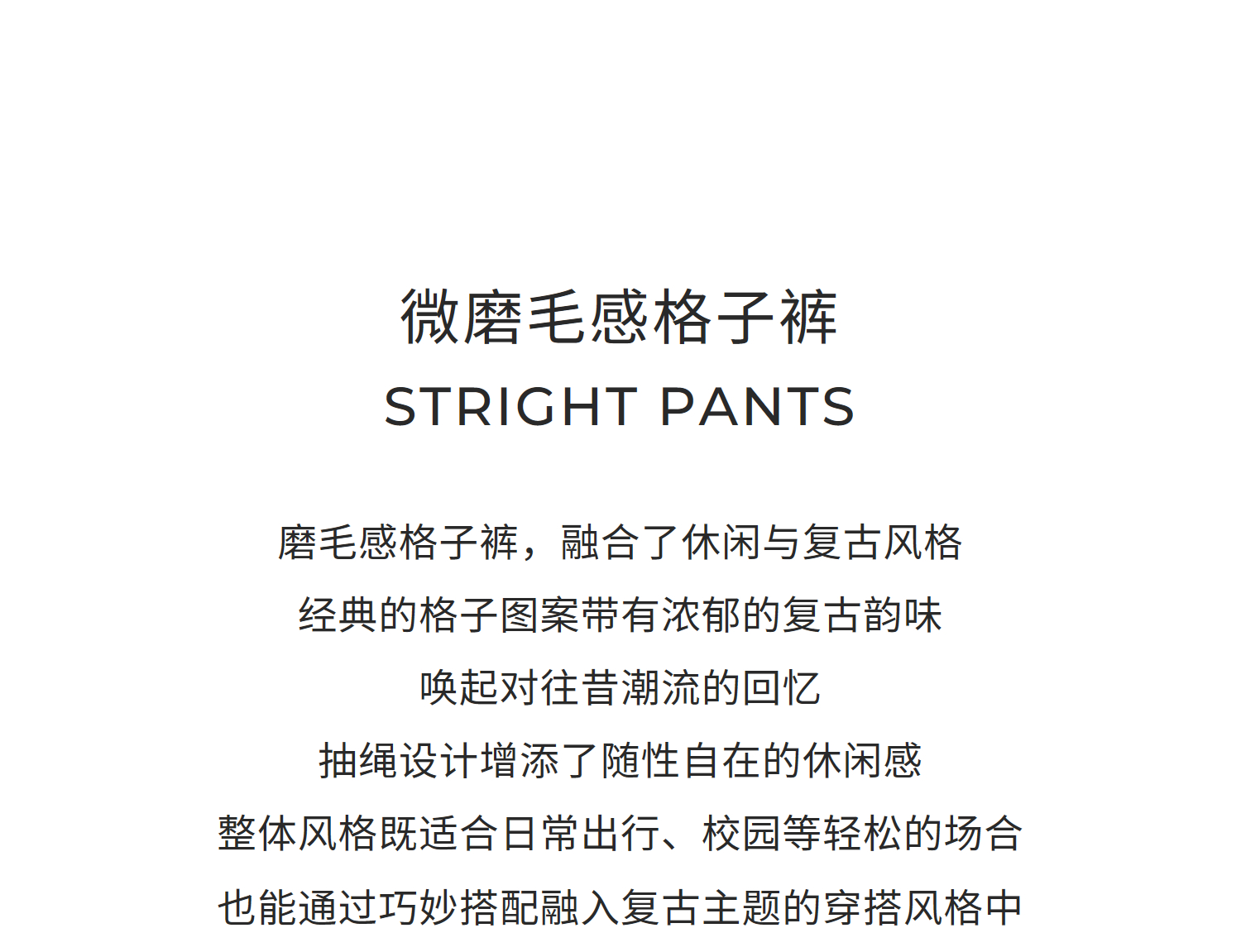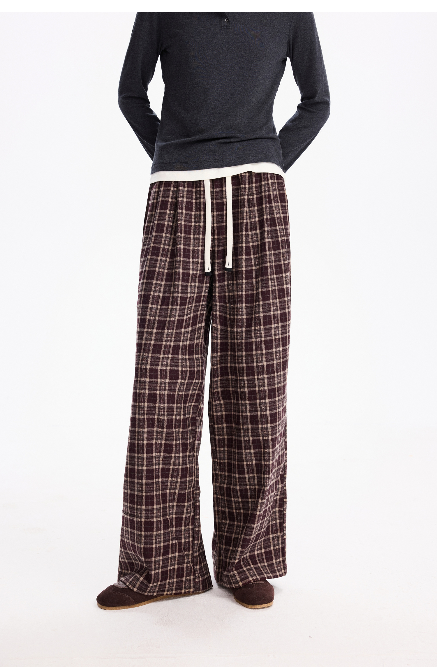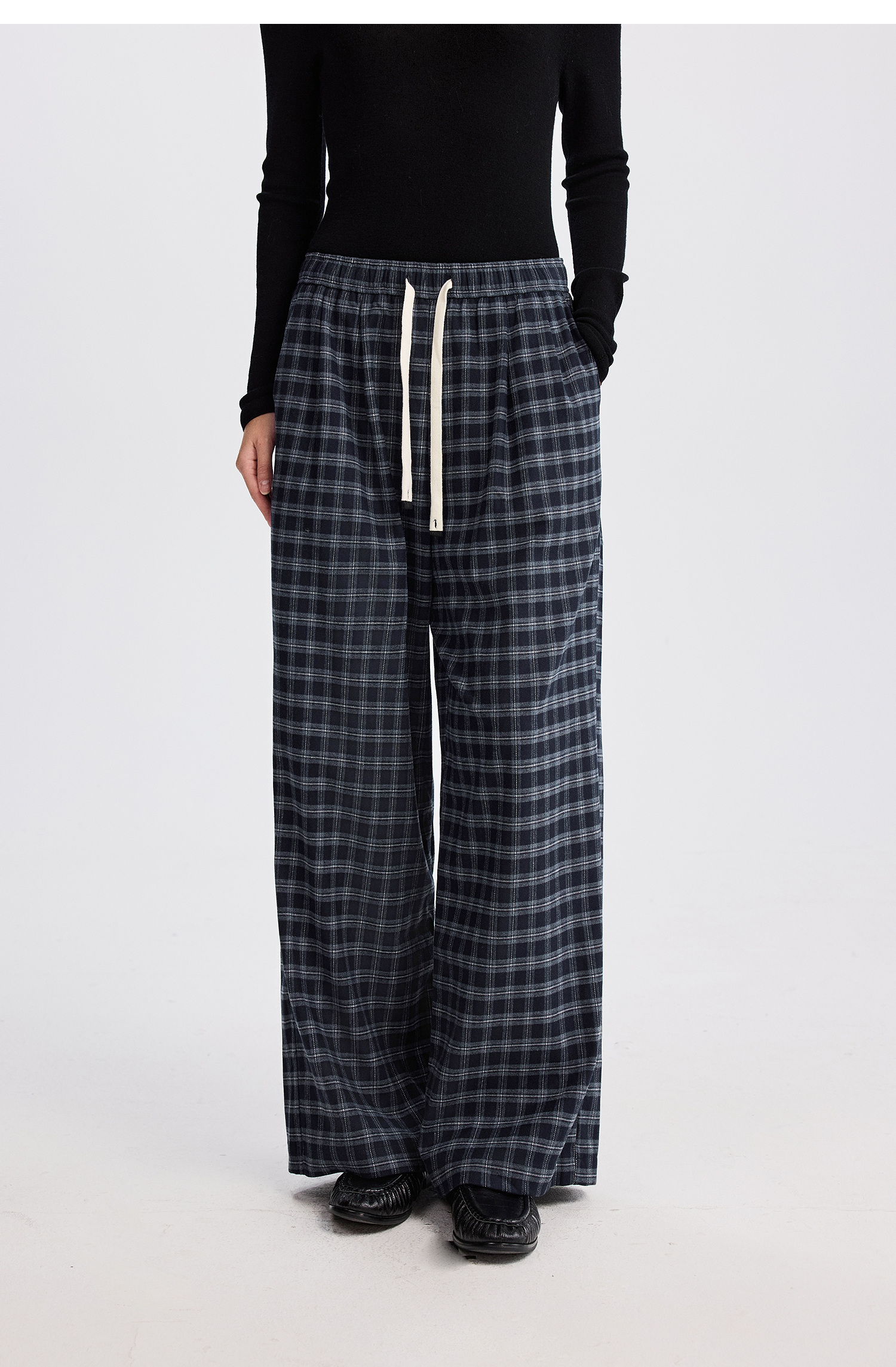 棉仓366618036-微磨毛感格子裤女松紧腰抽绳25秋冬微宽松直筒显瘦长裤阔腿裤