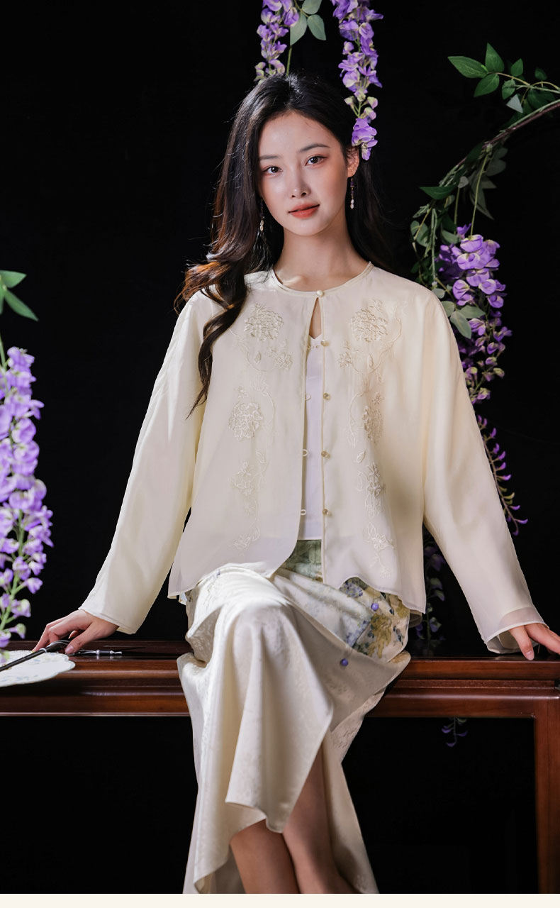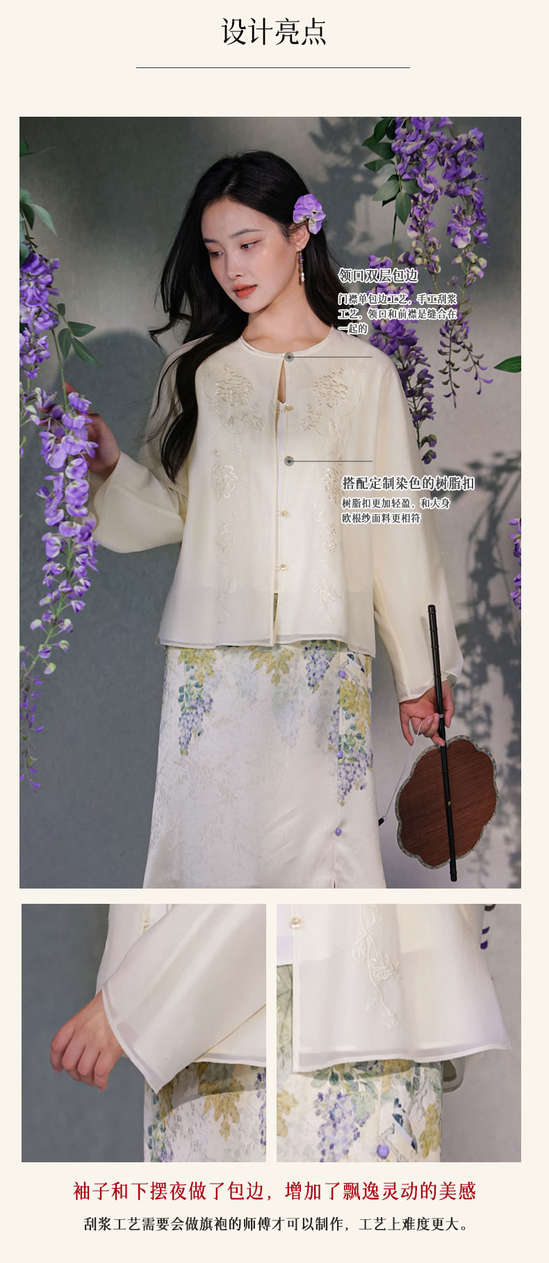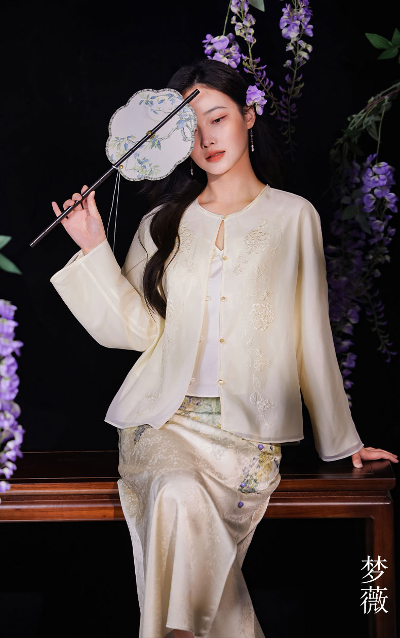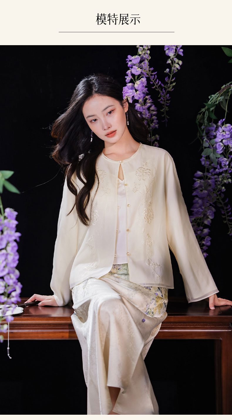 逸红颜梦薇2025早秋新款禅意雾感纱衣纹刺绣新中式外套防晒外披女