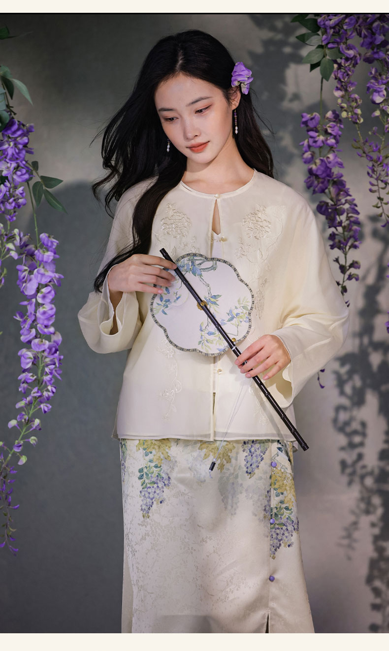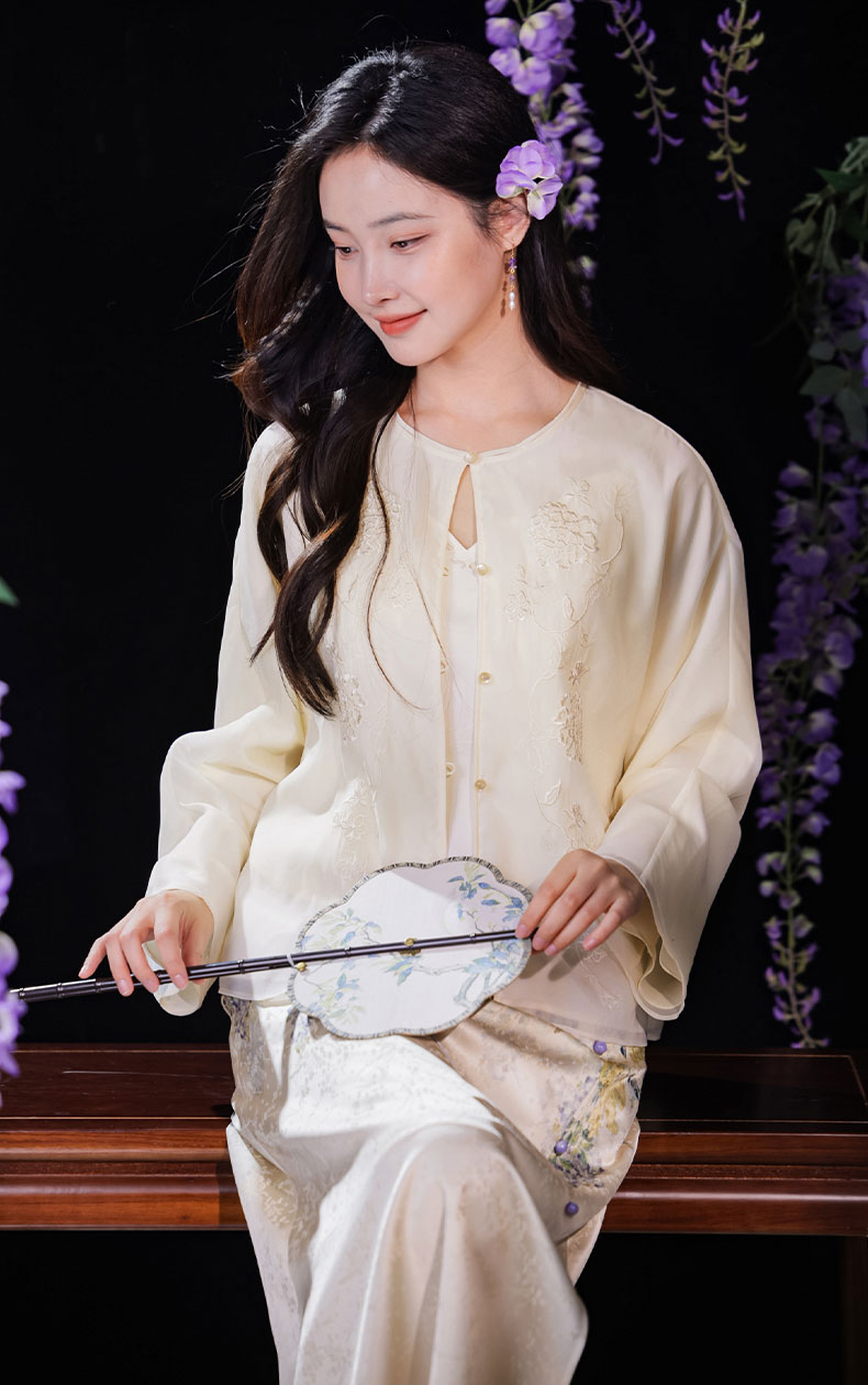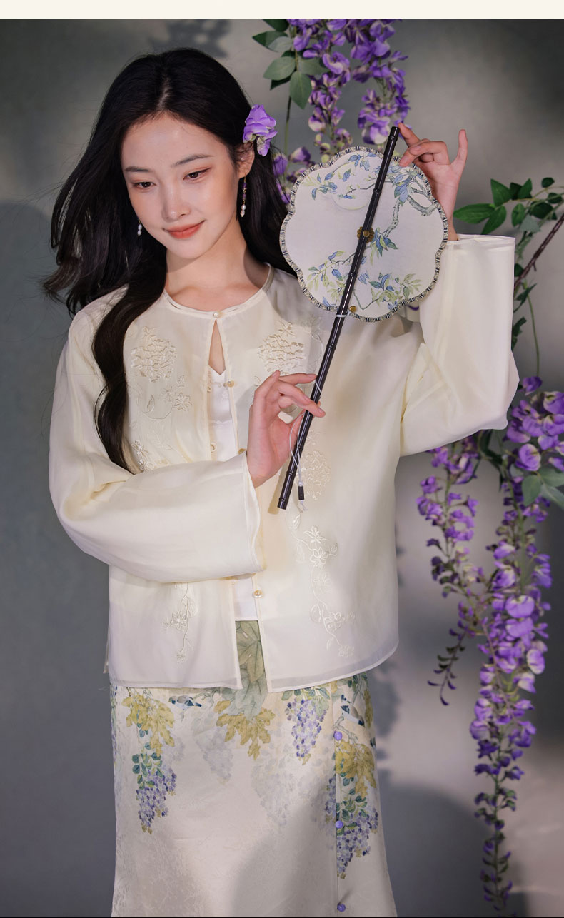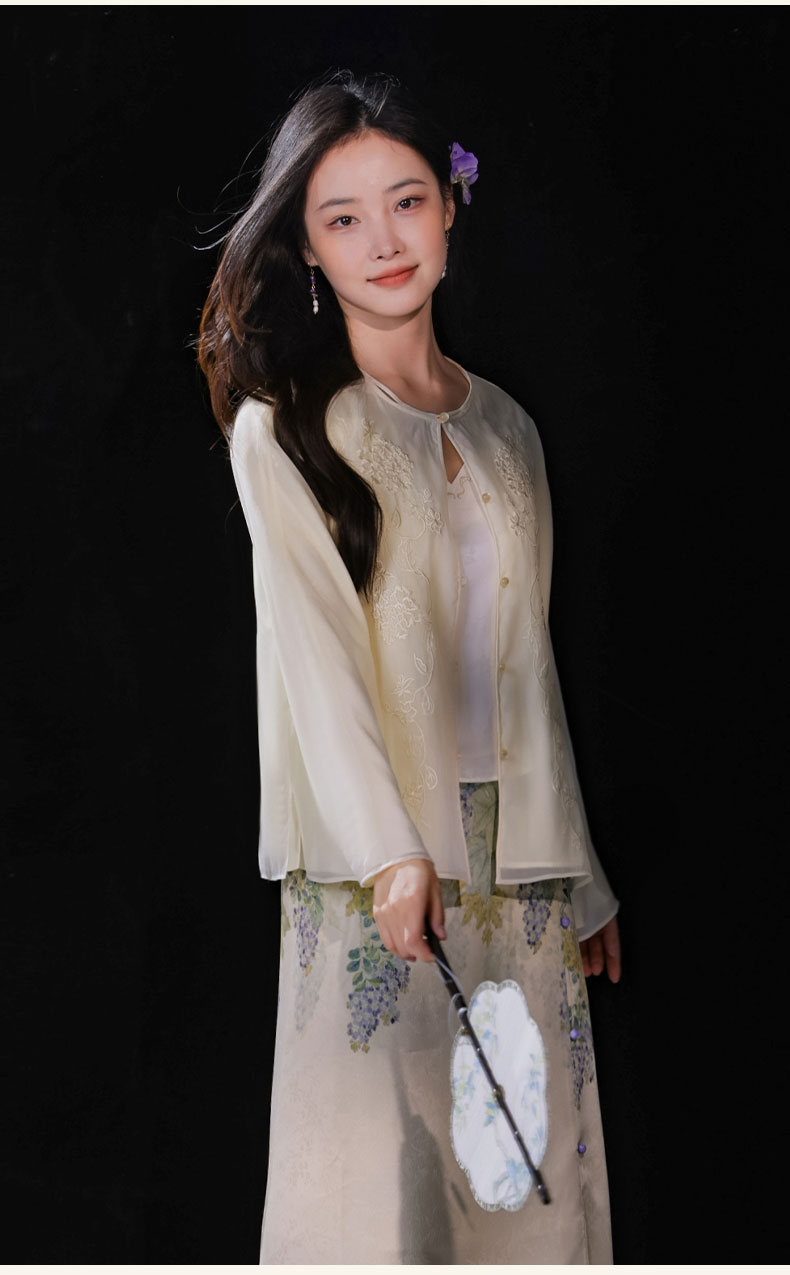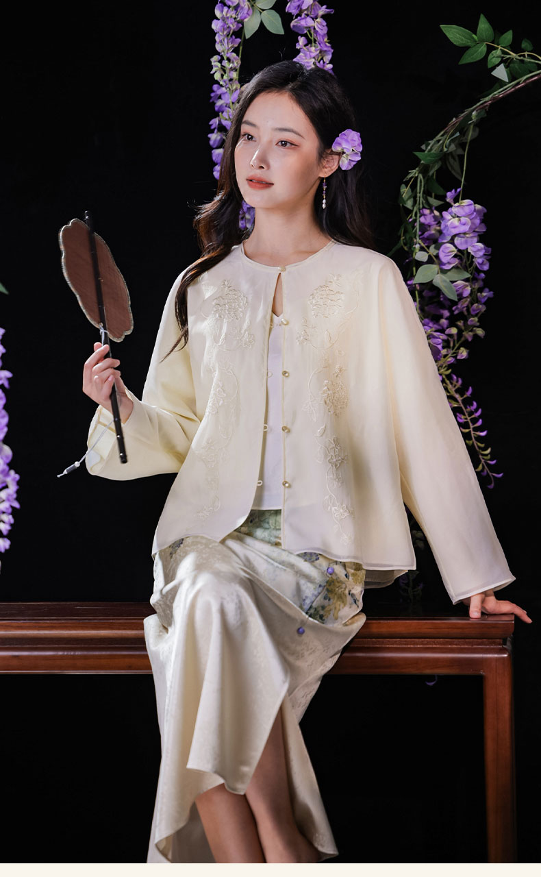 逸红颜梦薇2025早秋新款禅意雾感纱衣纹刺绣新中式外套防晒外披女