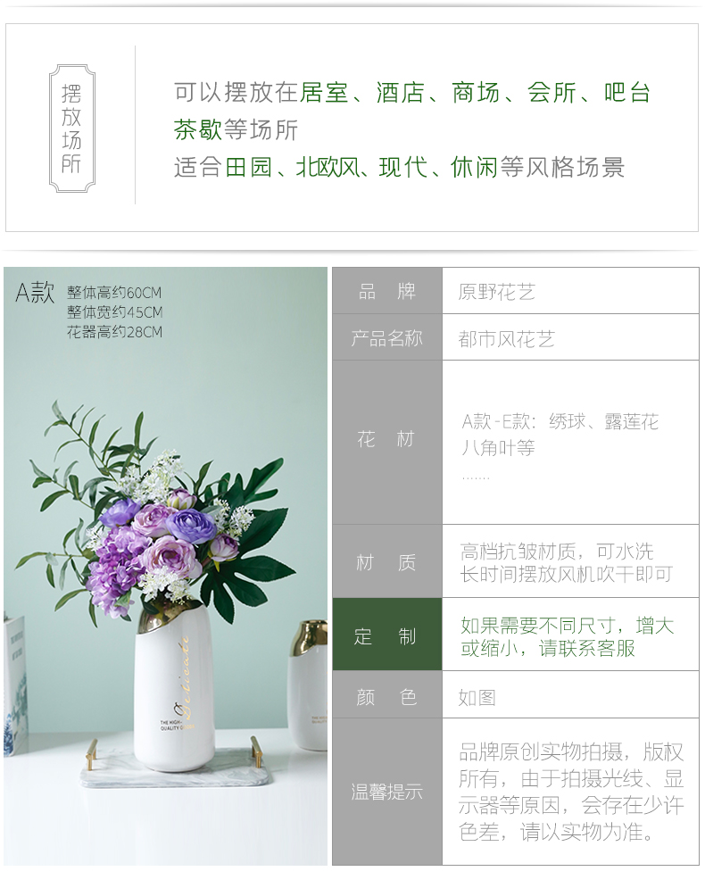 高档轻奢现代仿真花假花酒店前台客厅卧室餐桌边几摆设装饰花摆件