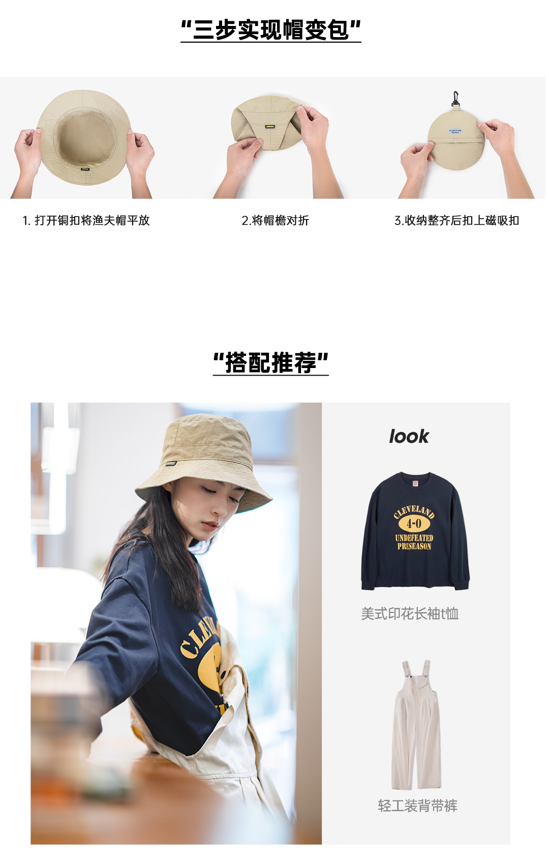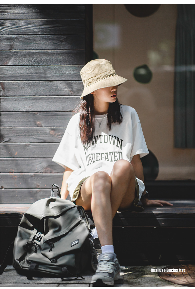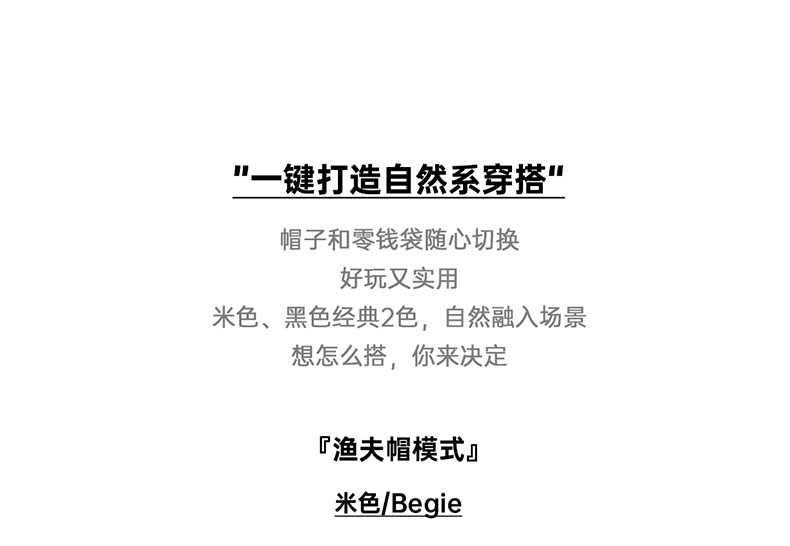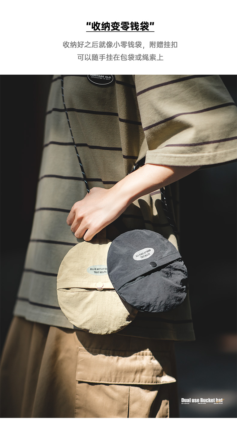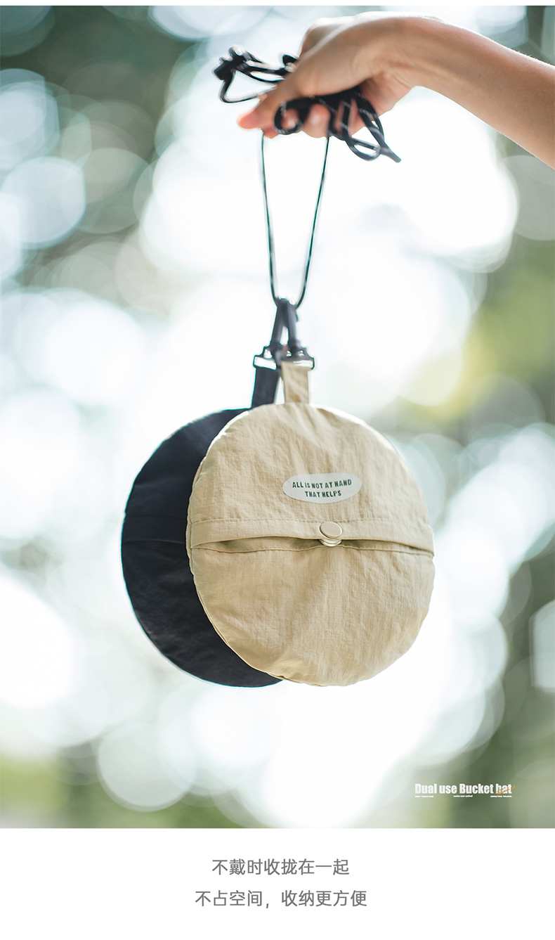 马登女装山系户外登山渔夫帽两用手提零钱包钱袋便携帽遮阳帽子
