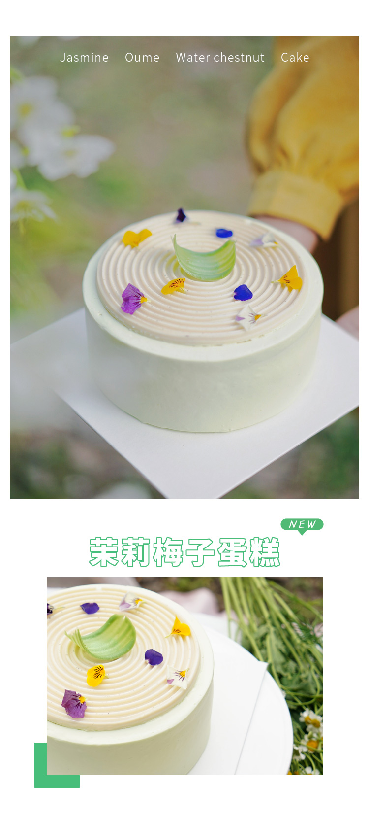 「清新」茉莉梅子--茉莉奶茶布丁梅子马蹄酱动物奶油蛋糕【茶味清新 口感清甜】