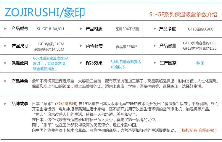 日本象印正品SL-GF18保温饭盒 3层真空不锈钢保温桶 密封便当盒