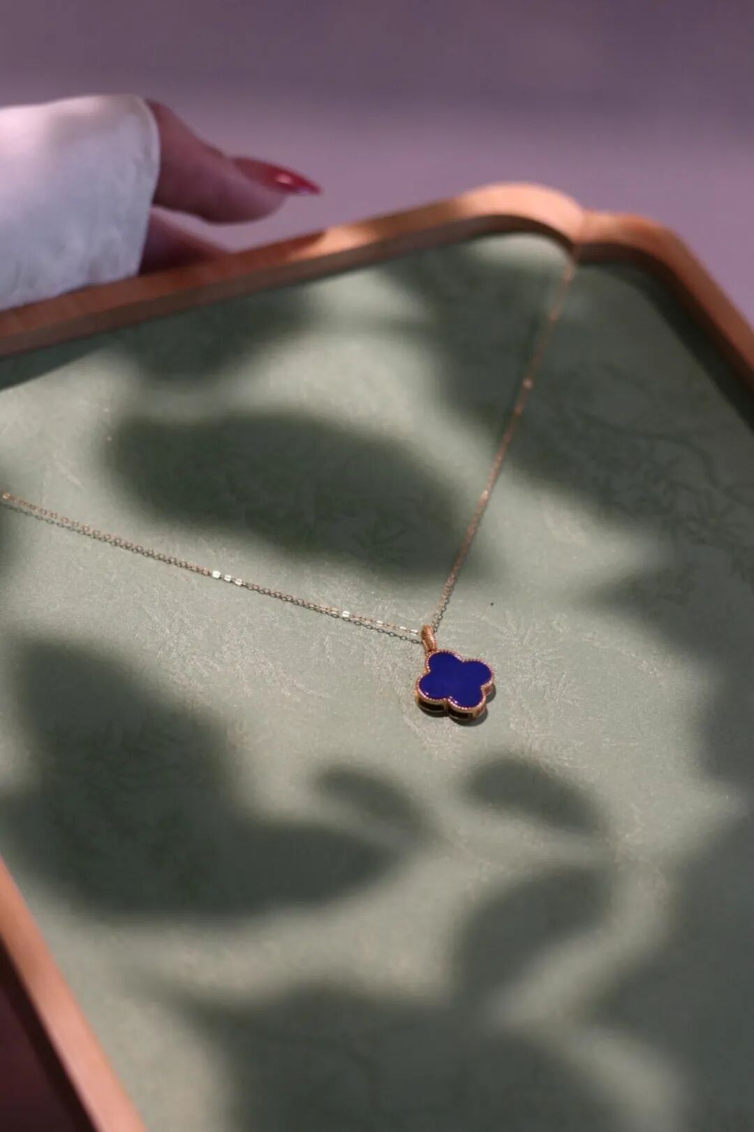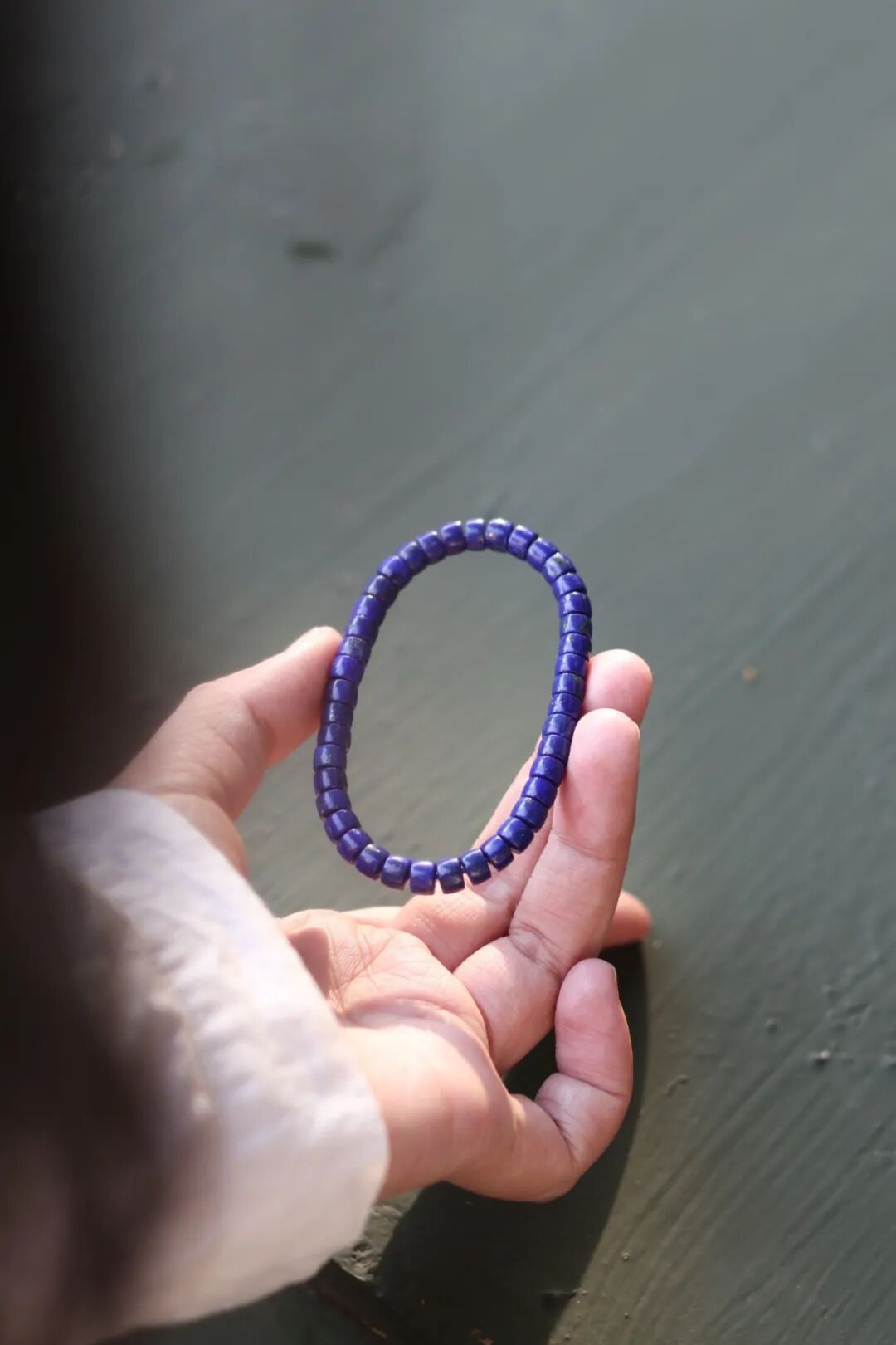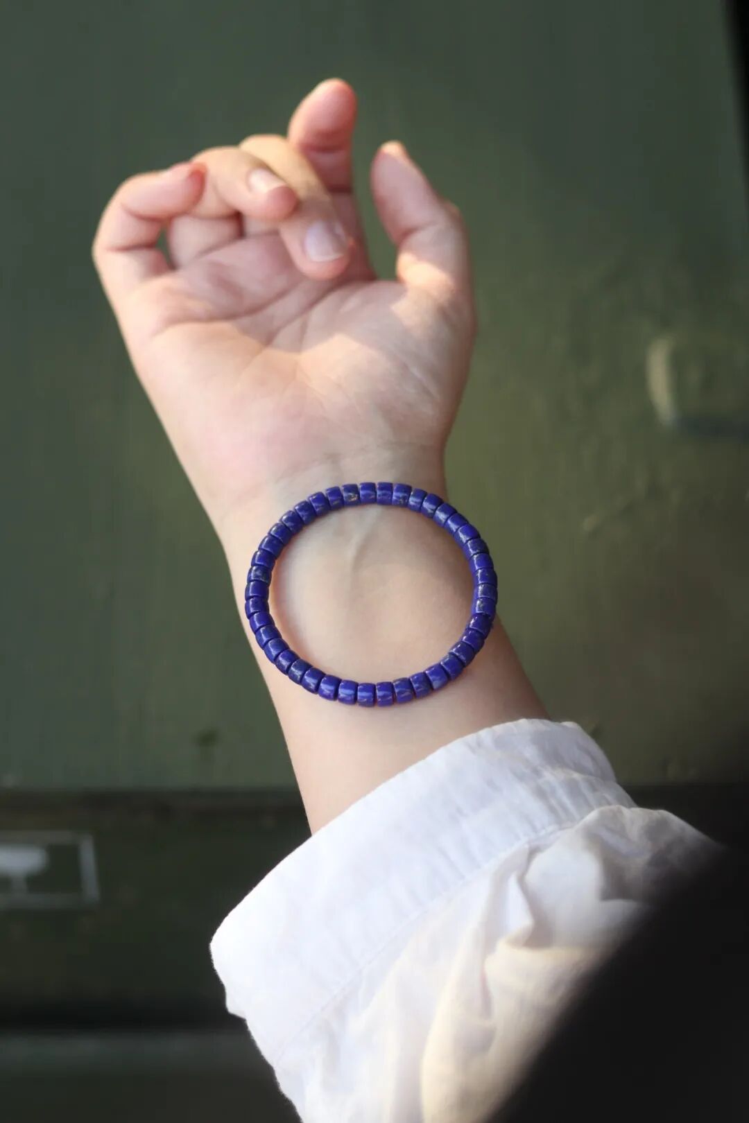 上好的青金石,介于宝蓝与紫蓝之间,黄铁矿均匀分布,似闪闪星光,如若细赏,仿佛夜空在眼前铺开,神秘、幽远,有着永恒的美。