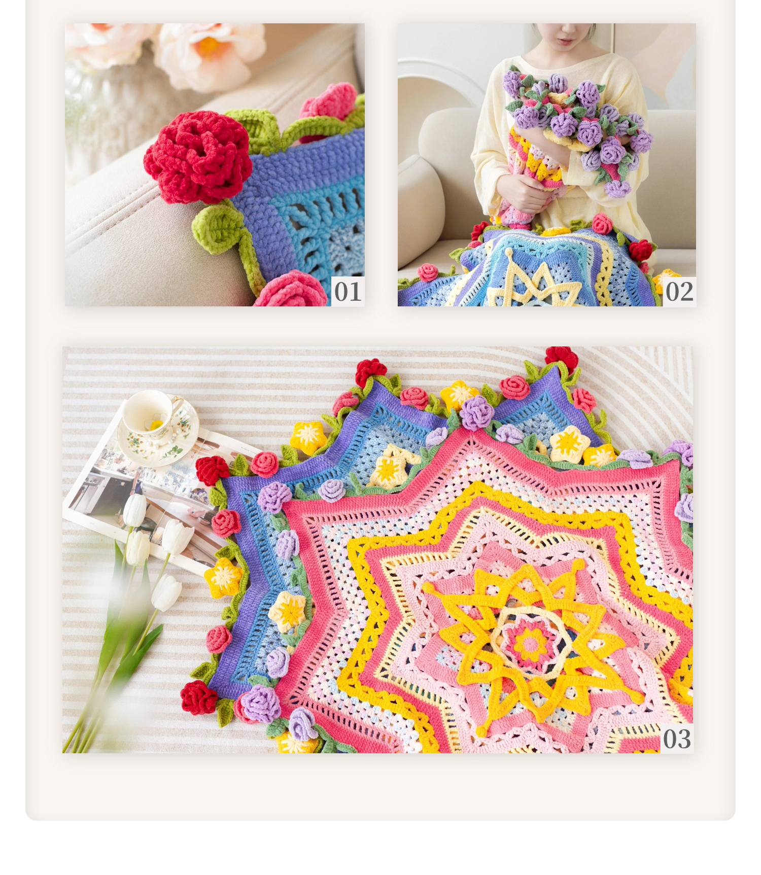 苏苏姐家星光花束毯手工diy编织钩针毯子毛线团自制材料包