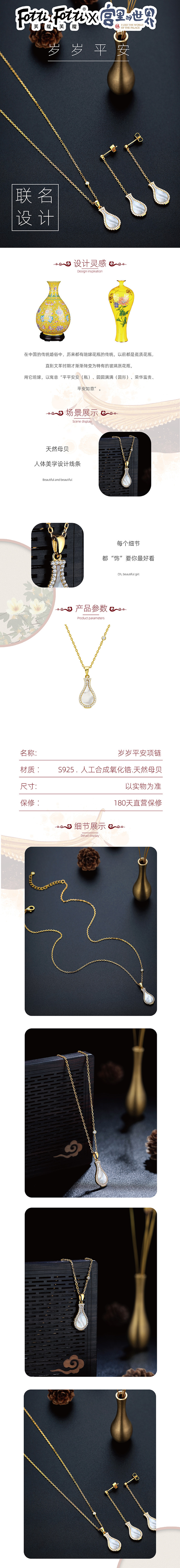 【宫里项链】 岁岁平安银镀金贝母镶嵌 项链