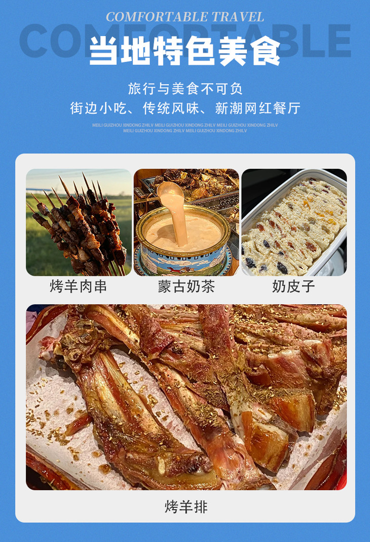 - 适时前往鄂尔多斯安排入住,之后我们可以自由结伴寻觅美食、欣赏夜景!