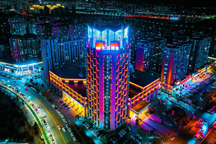 夜幕降临,康巴什区的街头,满眼都是火树银花的炫彩景象。灵动闪烁的各色花灯、耀眼夺目的建筑灯光秀等,将康巴什的夜晚映衬得绚丽夺目,吸引众多市民游客漫步拍照。