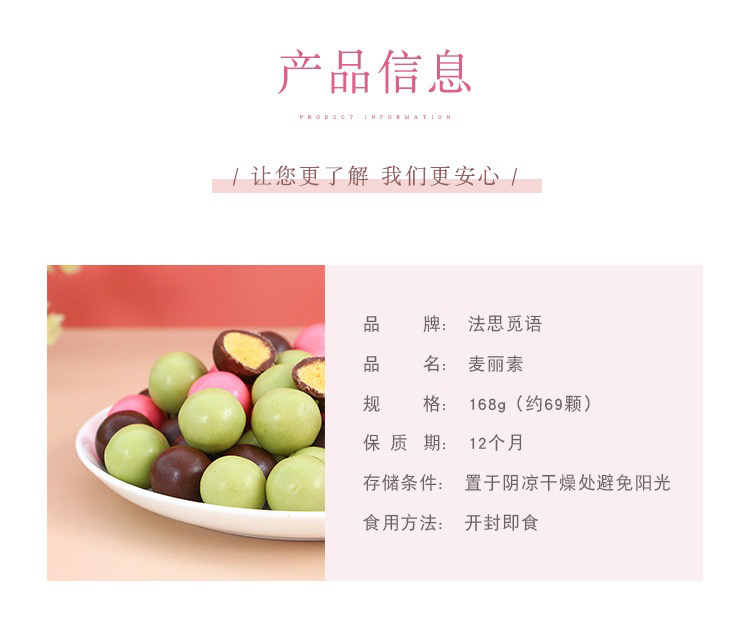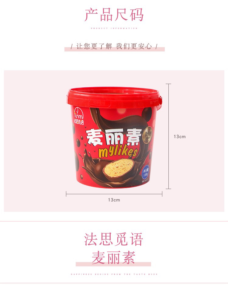 玛卡红麦丽素88g法思觅语麦丽素夹心巧克力球168g桶装