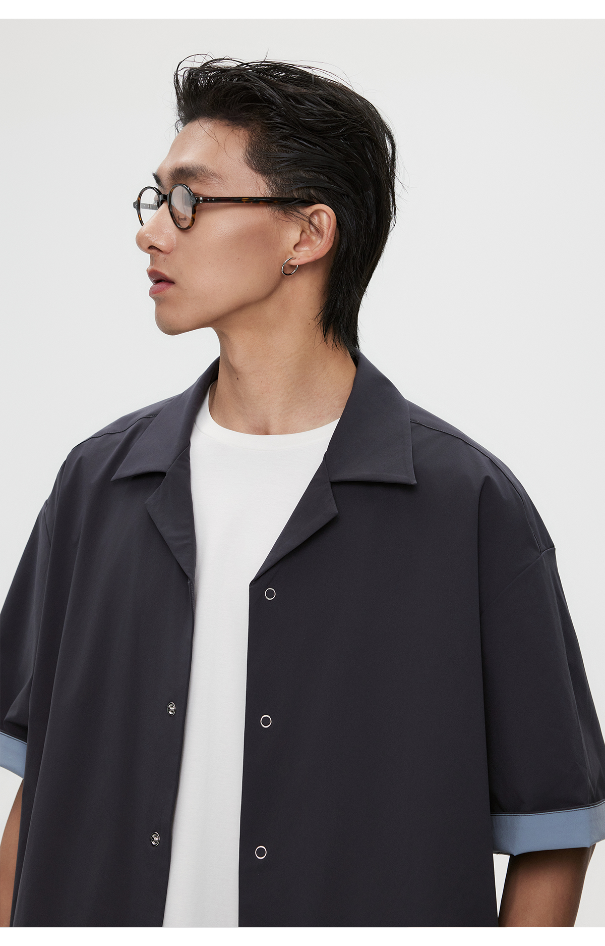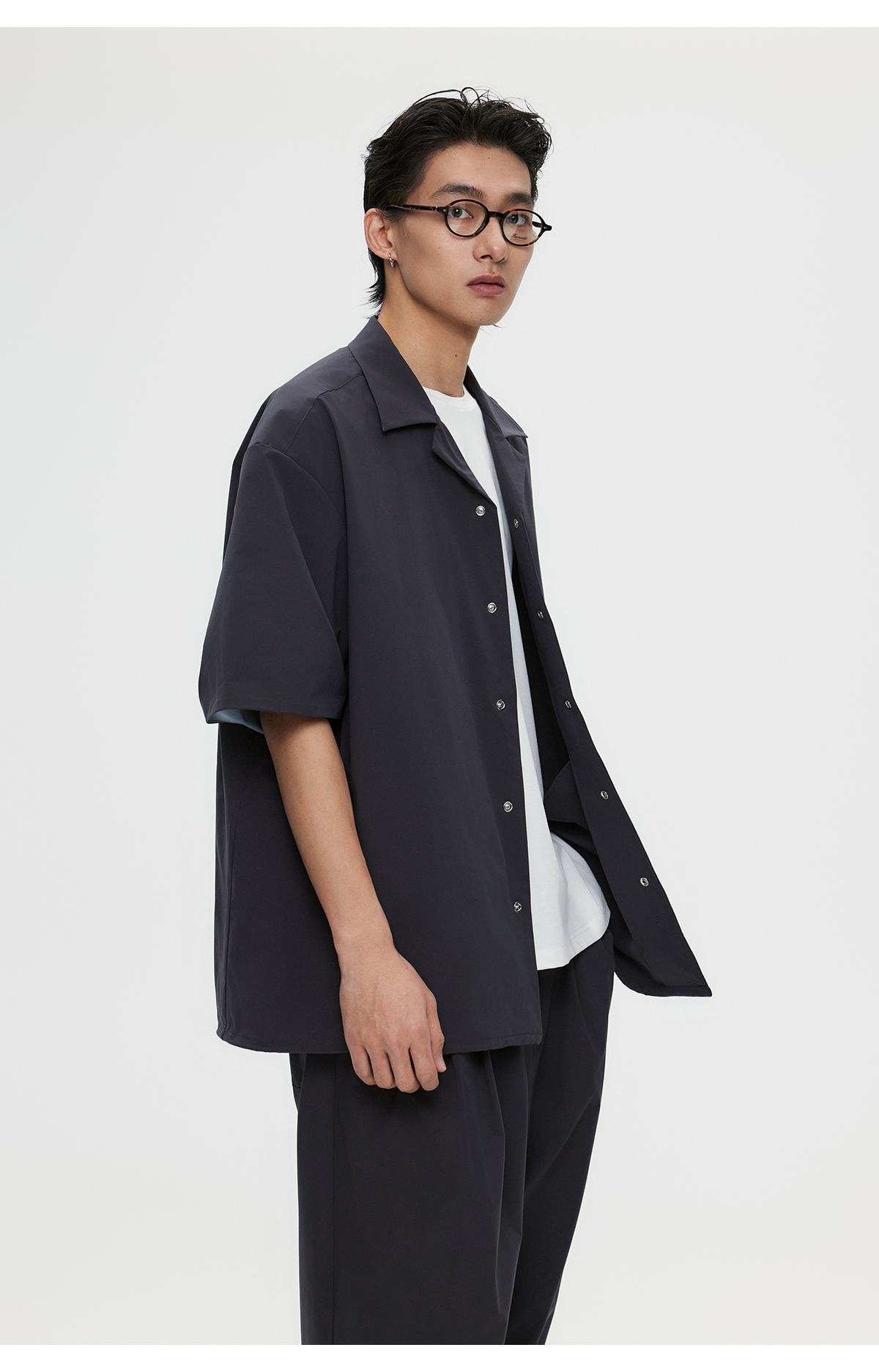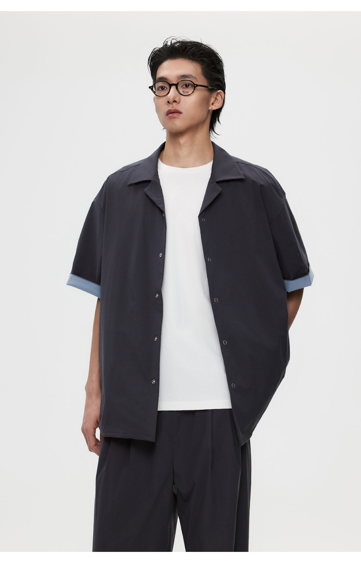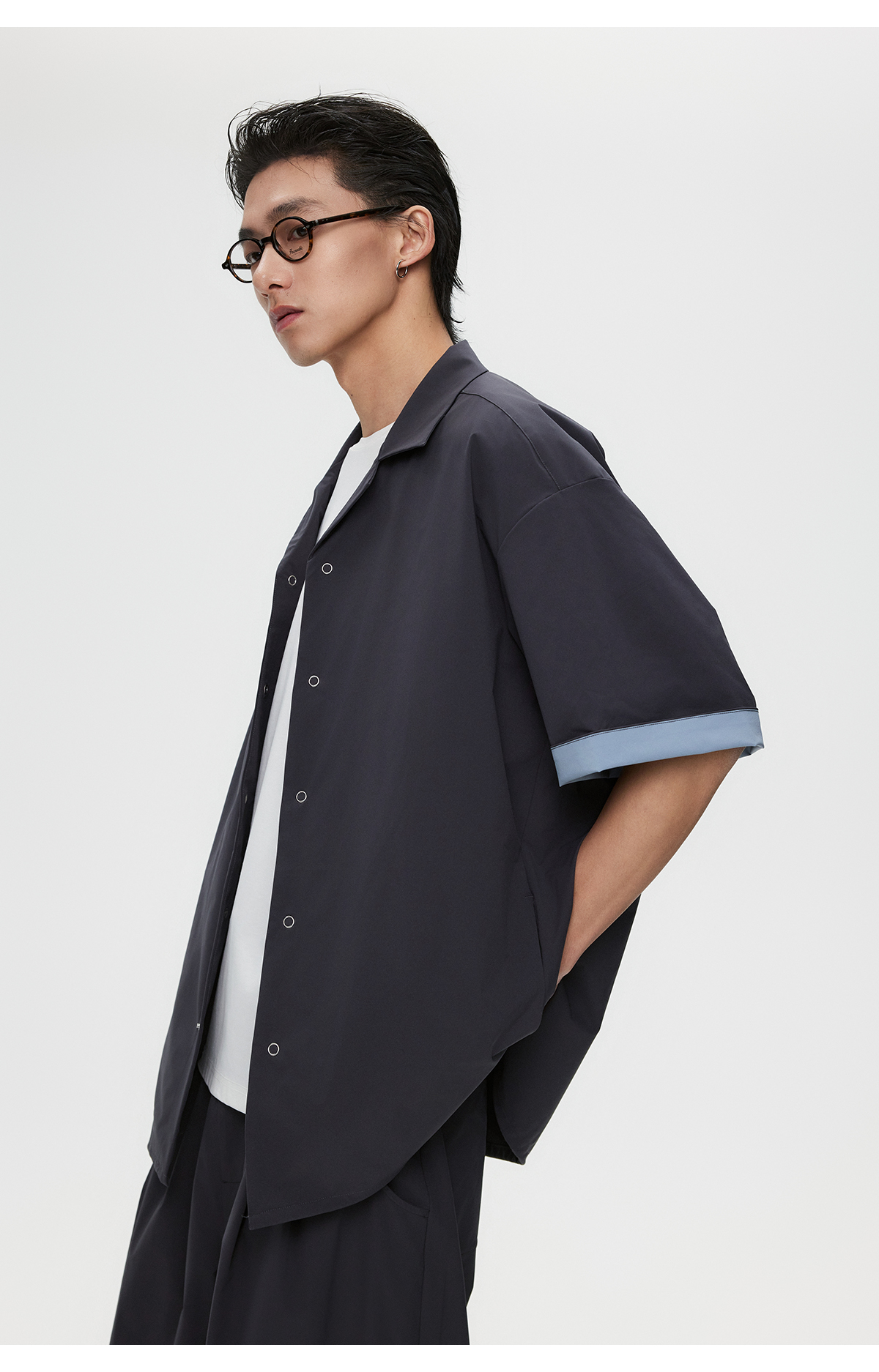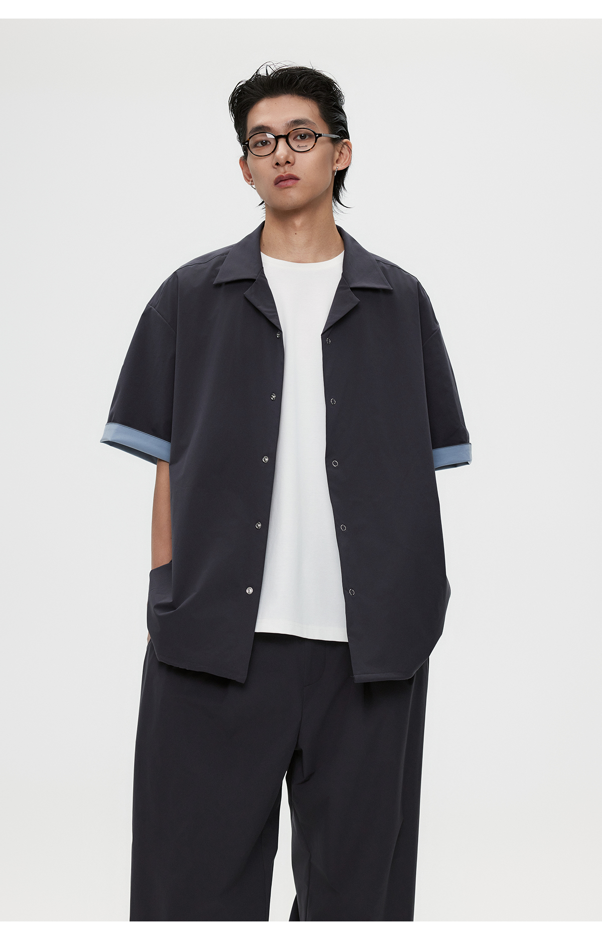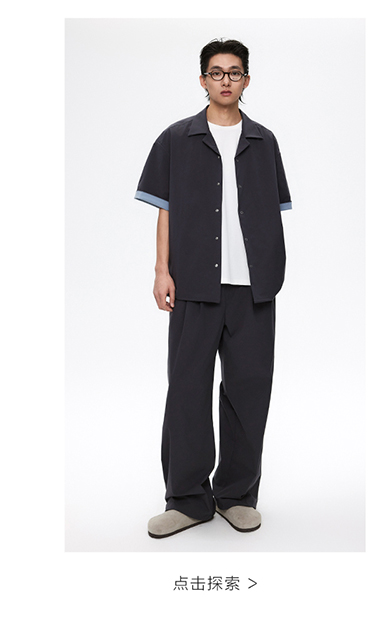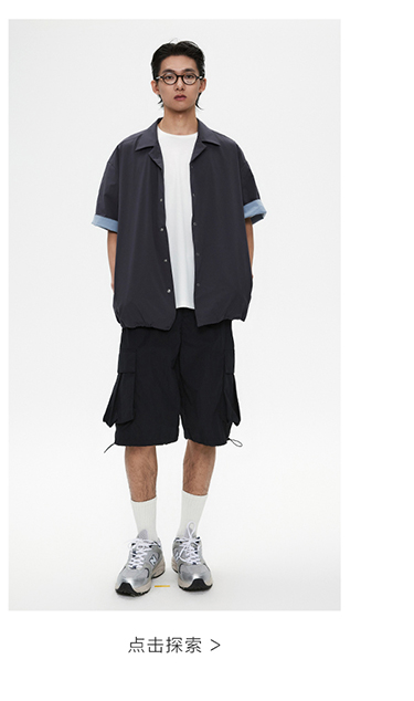 棉仓3531004002-【暗蓝冰川】SOLOTEX环保生活古巴领短袖休闲衬衫