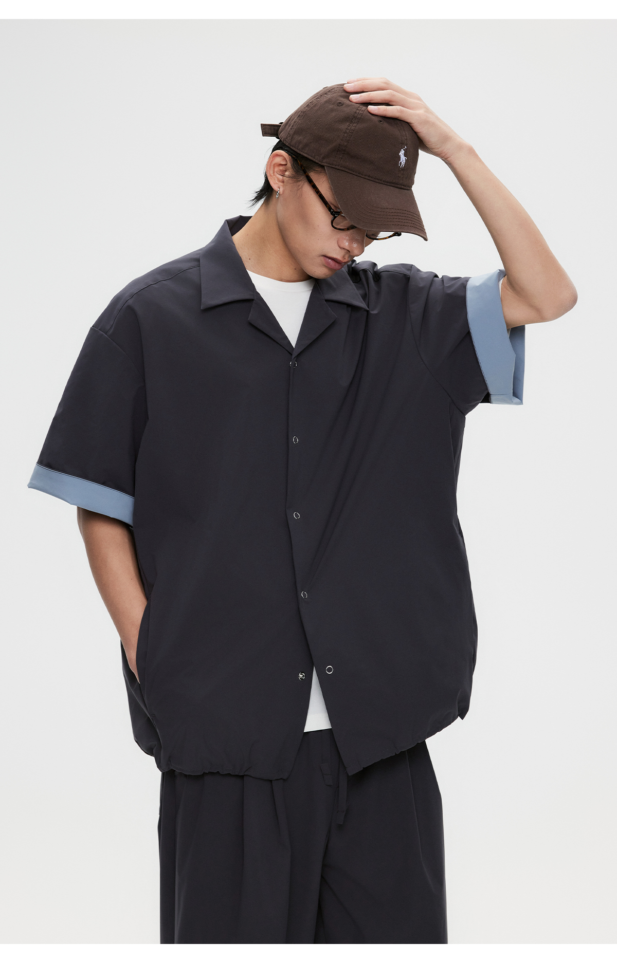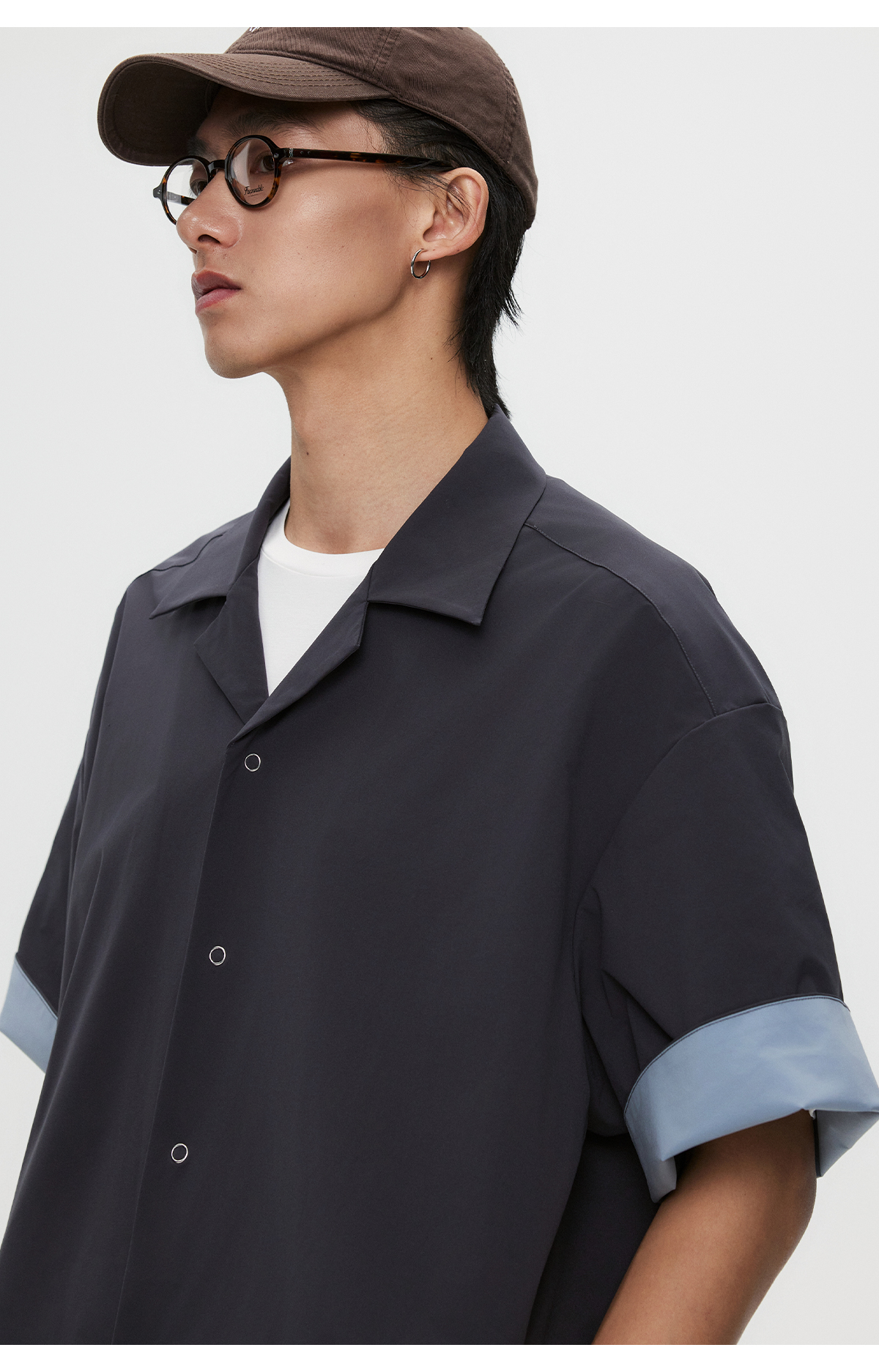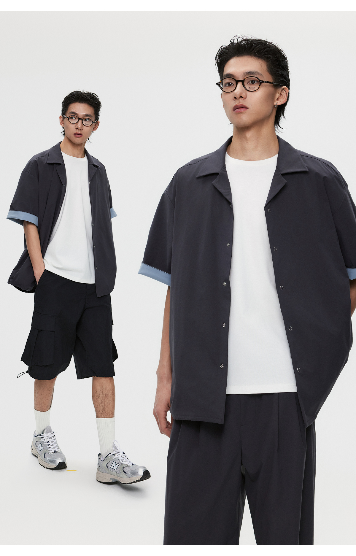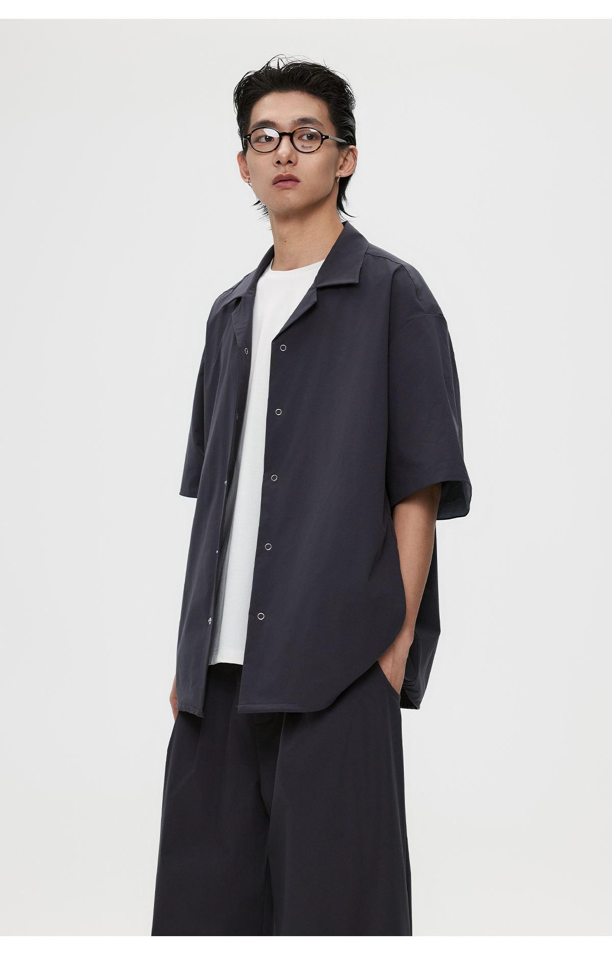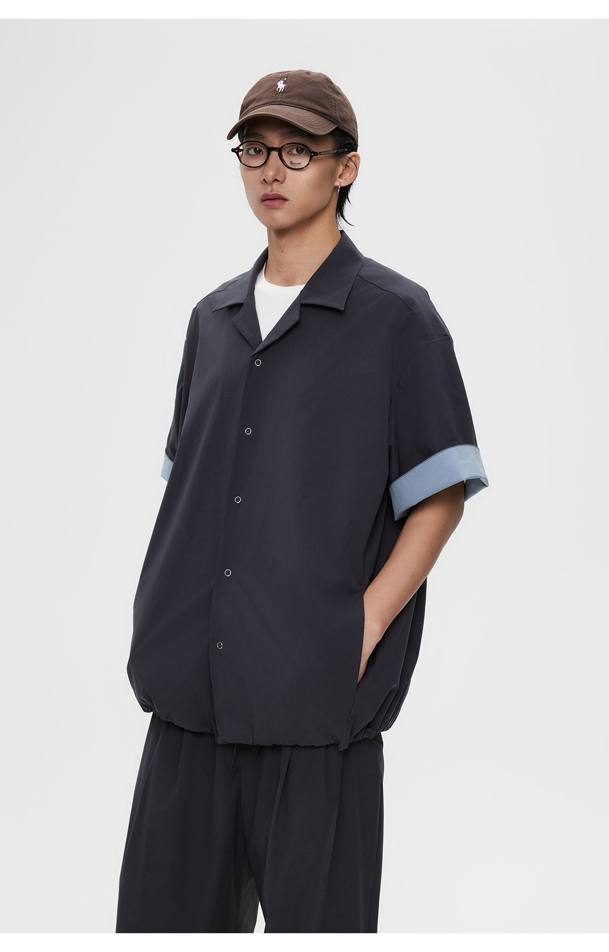棉仓3531004002-【暗蓝冰川】SOLOTEX环保生活古巴领短袖休闲衬衫