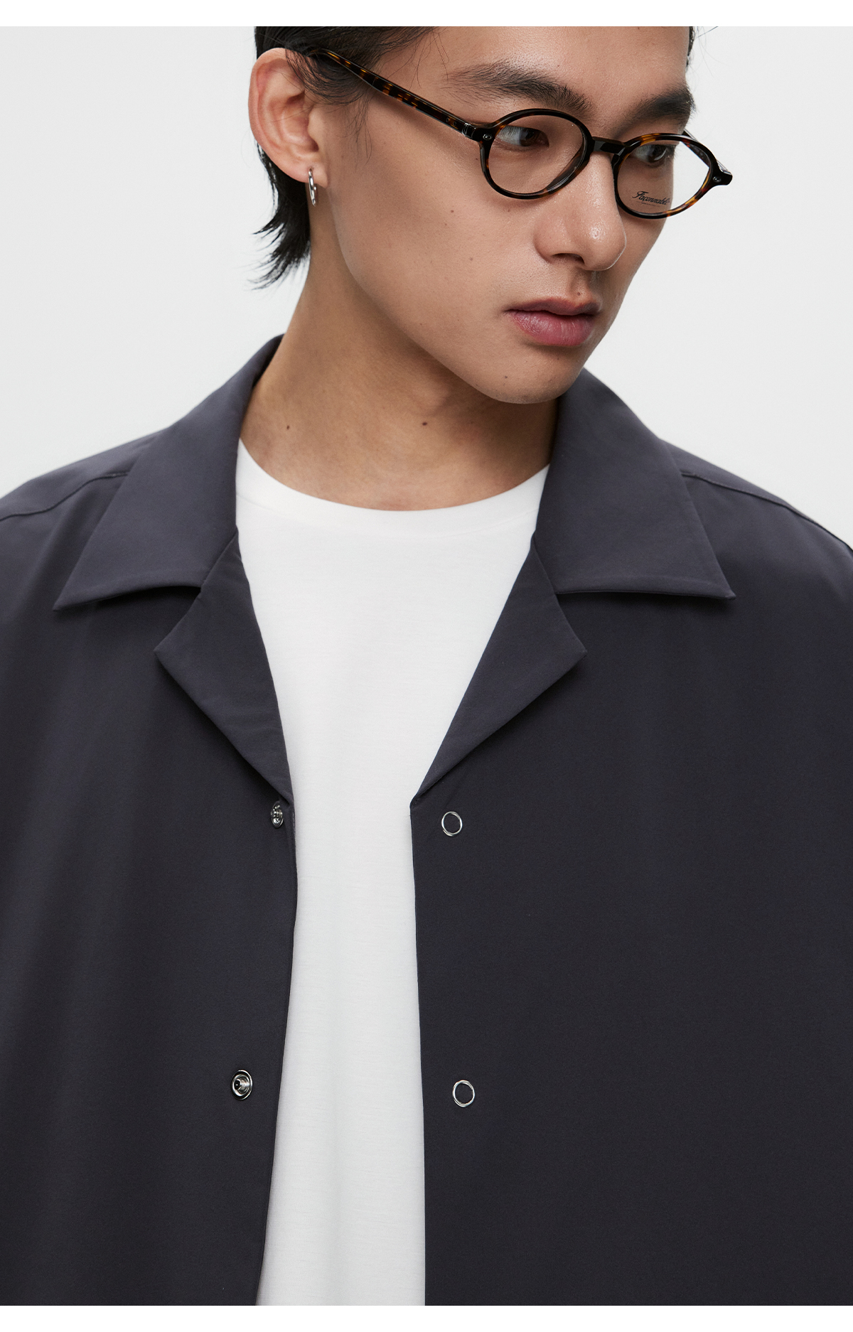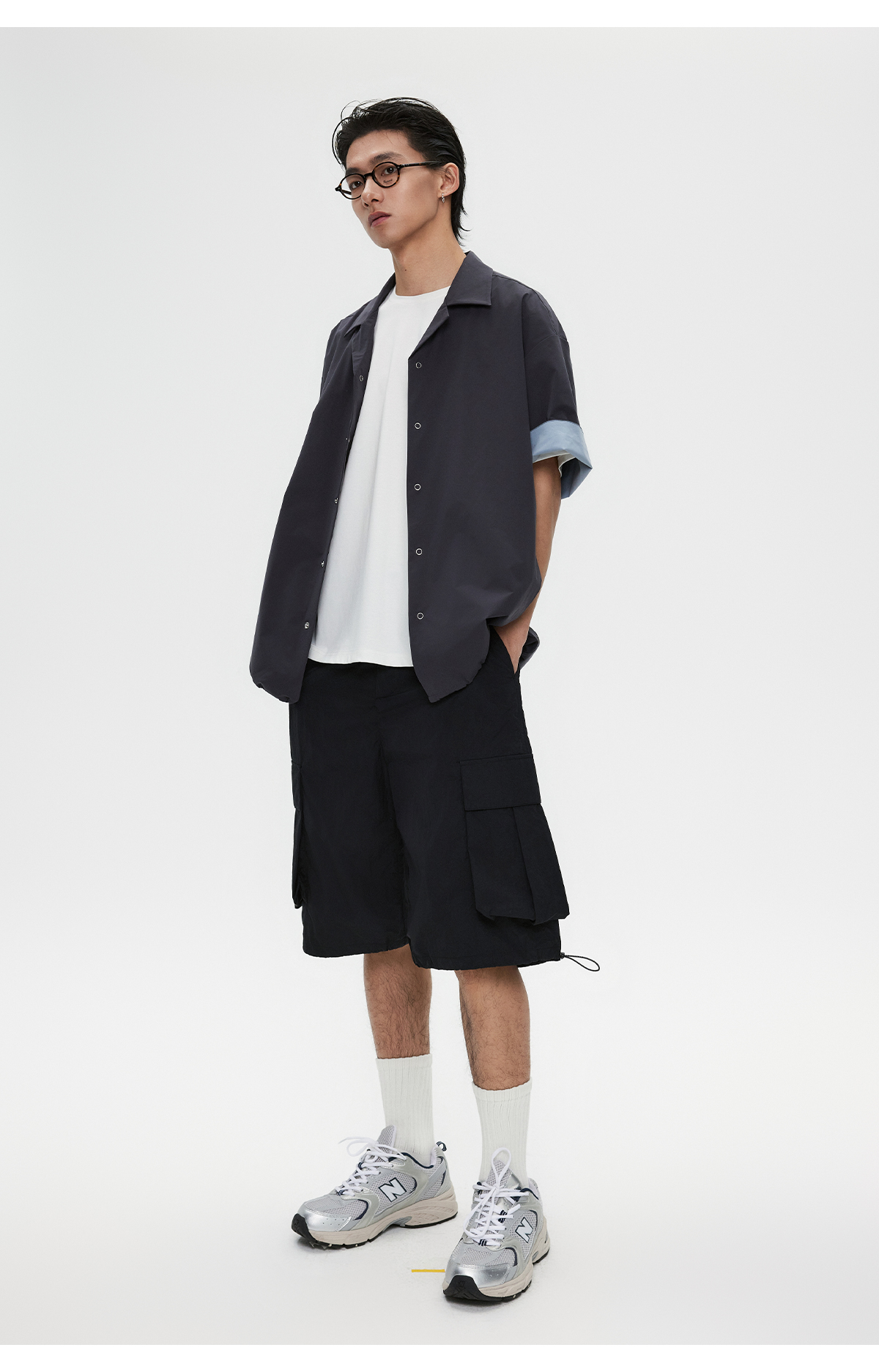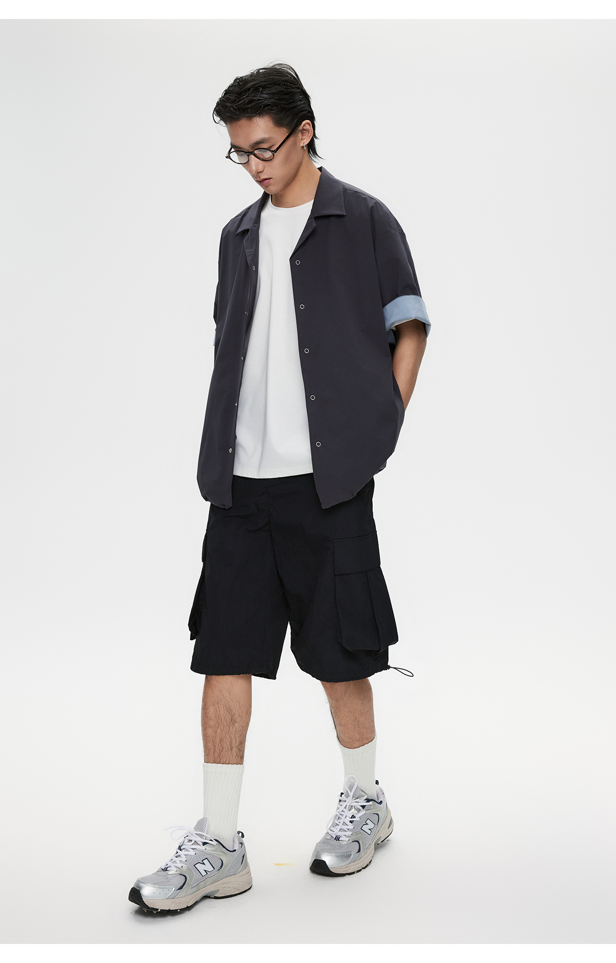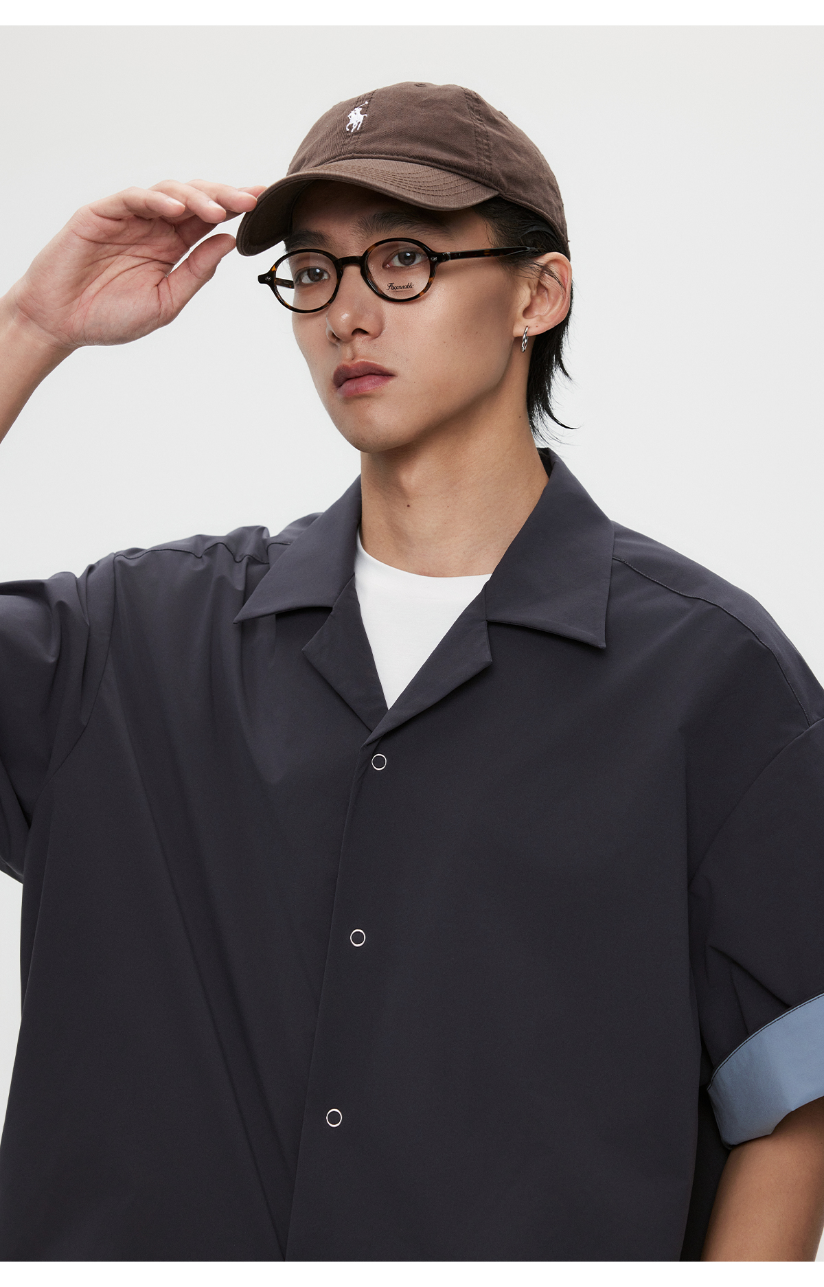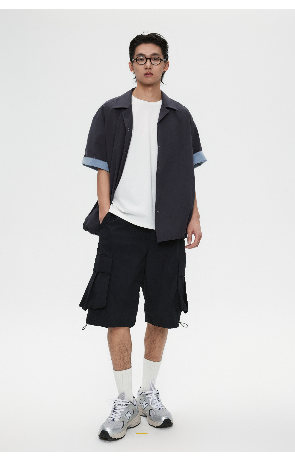 棉仓3531004002-【暗蓝冰川】SOLOTEX环保生活古巴领短袖休闲衬衫